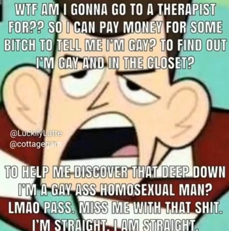I don’t therapy is bad because it’s for gays and crazies, I think it’s bad because it doesn’t cure gays and crazies.