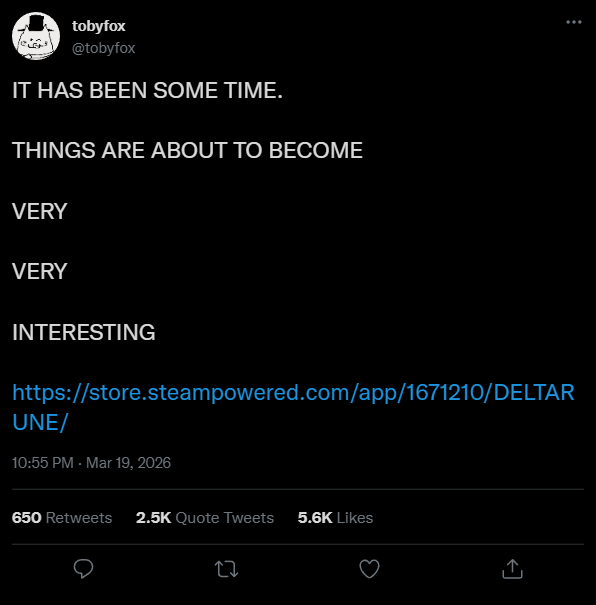 deltarune he says, it'll be out when it's outand we like thatgreat work ethic!