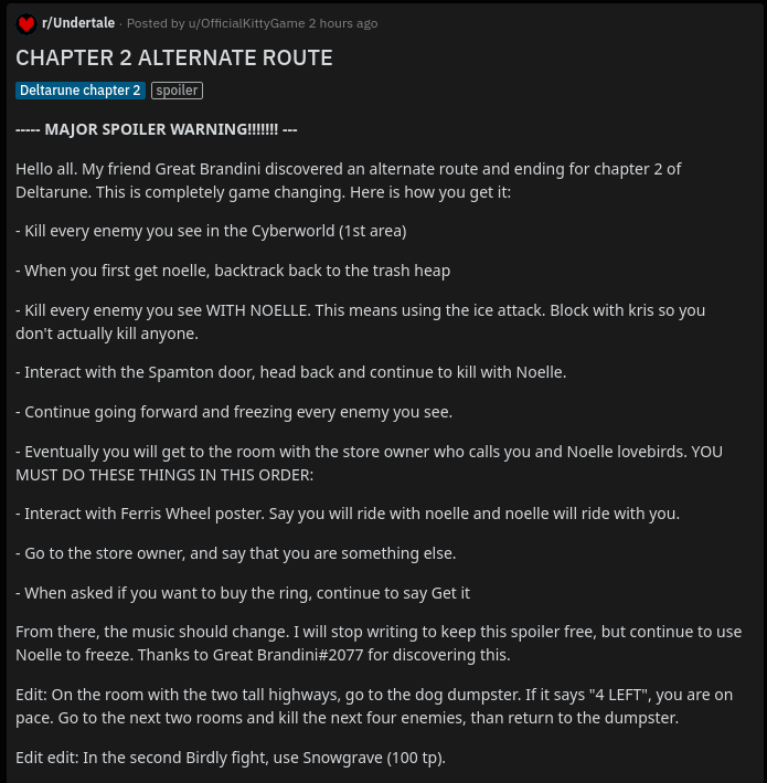 Let me say this once again, since apparently it was not made clear when development began. Deltarune has no set schedule. Chapters are done when they’re done and will be released when they’re done. In case you haven’t noticed I’ve been more than a little busy the last few months. If you haven’t noticed, wake up already!