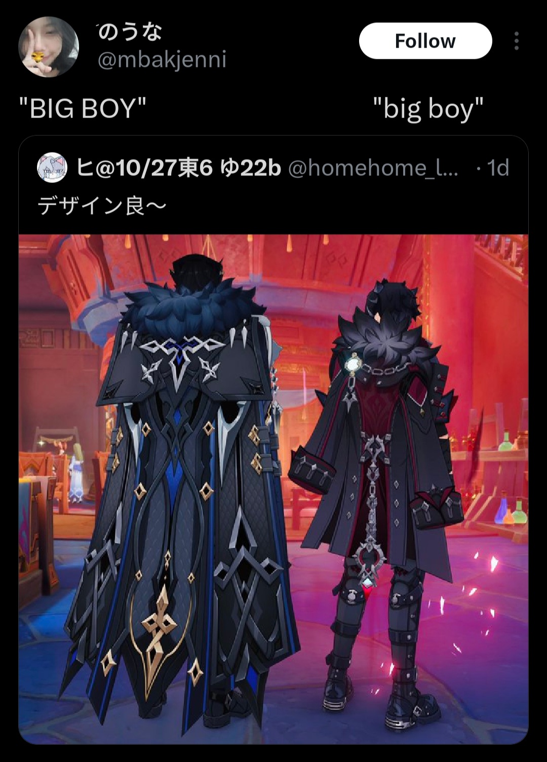 No you're just overly offended because you irrational hate your thread nemesis aka mindbroken and seethe at the mention of Clorinde.
