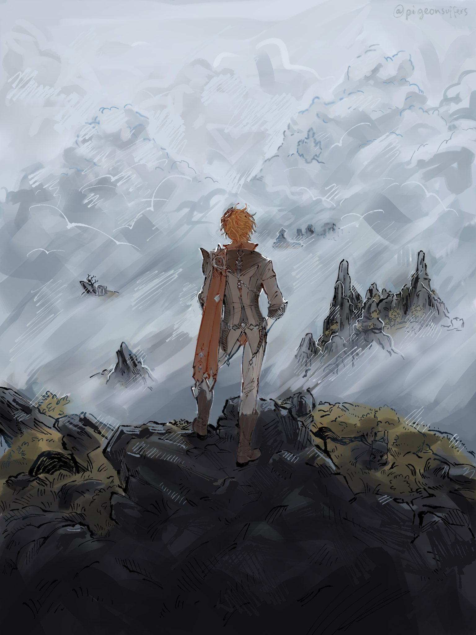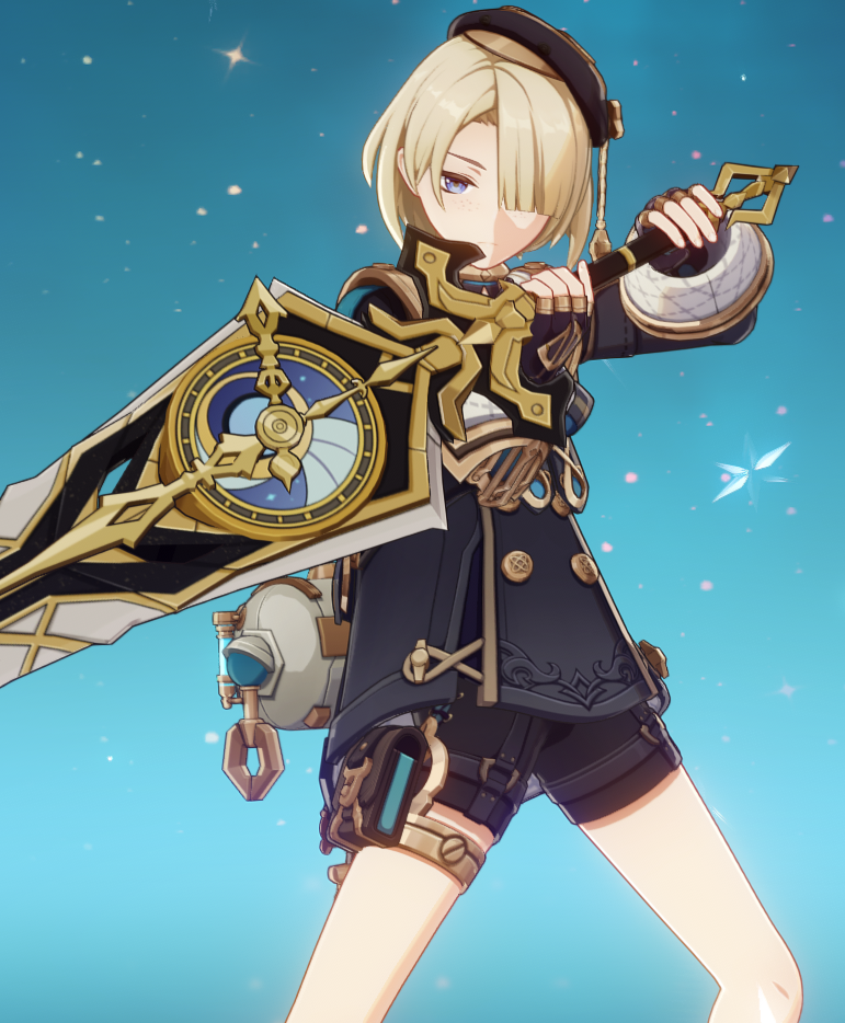 Hey, half the cast dont have claymores, only Diluc and Gaming can do it better.