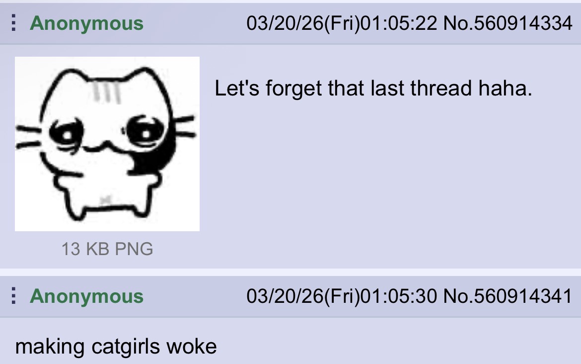>>560922214Let me guess, they're a catgirl and you're a femra..