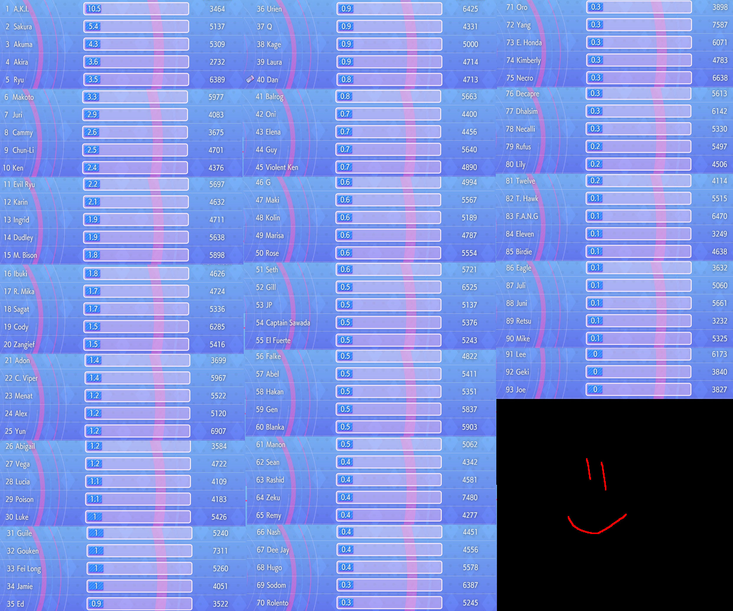 >Alex Gameplay Trailerhttps://www.youtube.com/watch?v=Xc2K1LF1dAs >Alex Arrives! Fighting Passhttps://www.youtube.com/watch?v=8OuQHAs7jMU >Latest Patch Noteshttps://www.streetfighter.com/6/buckler/en/battle_change>Year 3 Character Reveal Trailerhttps://youtu.be/ooMm_xsRRyw >The official Capcom Pro Tour website is livehttps://sf.esports.capcom.com/cpt/>High level replayshttps://replaytheater.app/?game=sf6>Street Fighter 6 Frame Datahttps://ultimateframedata.com/sf6/https://fullmeter.com/fatonline/#/calculators>SuperCombo Wikihttps://wiki.supercombo.gg/w/Street_Fighter_6>Fighting Game Glossaryhttps://glossary.infil.net/>Use Fightcade to play ST, A2, A3, 3S, CVS2, etc.https://www.fightcade.com/>Daigo drills (warm-up routine)https://pastebin.com/nWRv2BkLLast Round: >>560907157