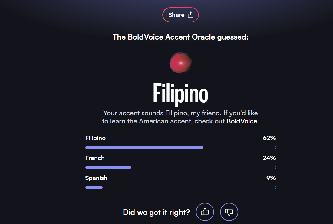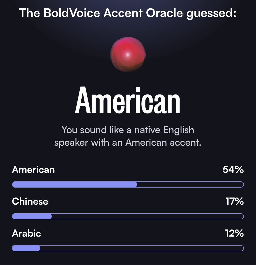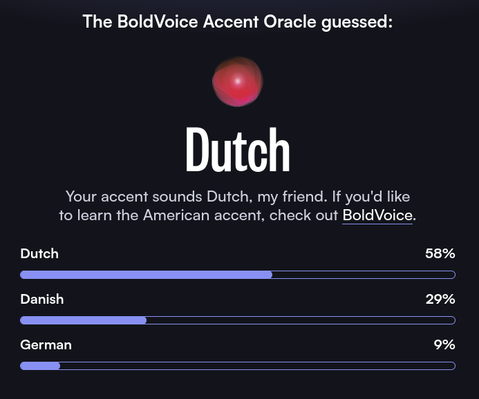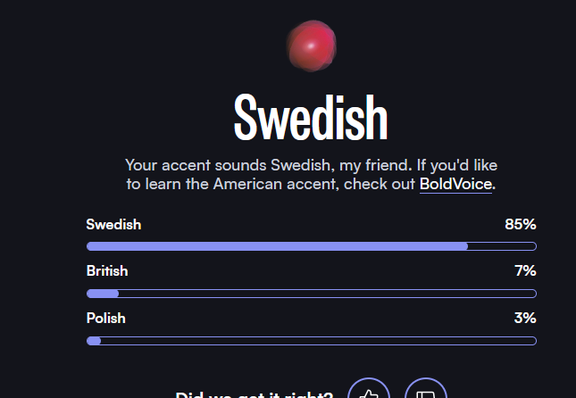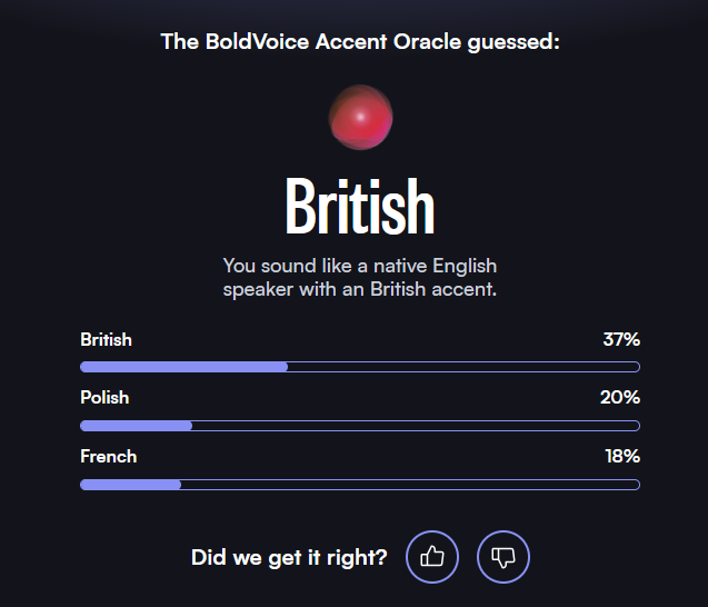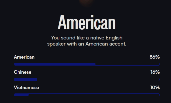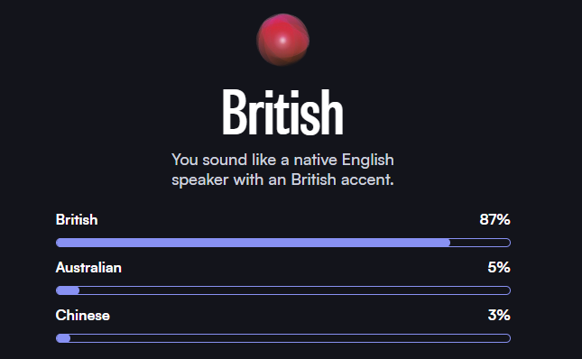 >>560969707couldn't imagine my accent was so strong... tried 3 times and got 91/95/99%