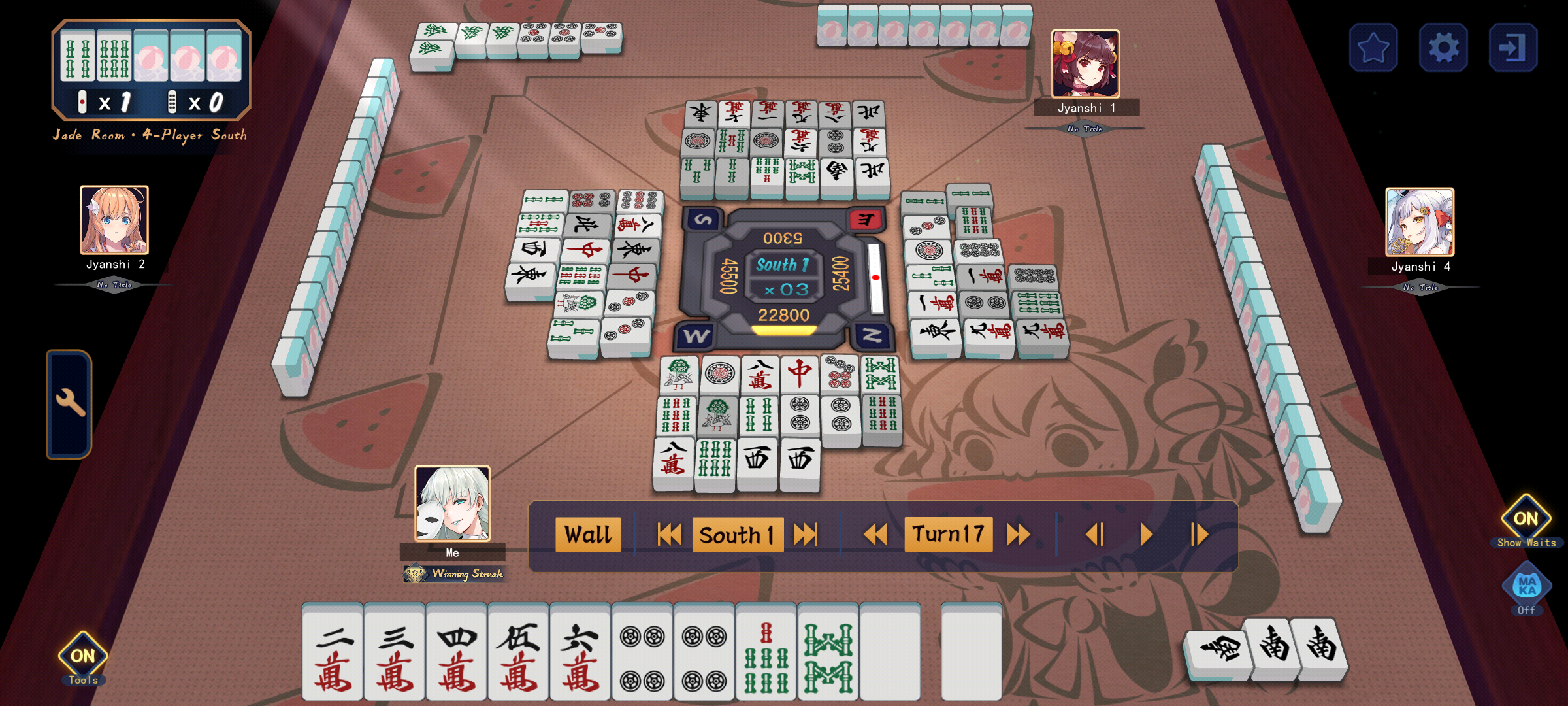 I'm done with my exams at last, so let's 'jongMajsoul Friends Room 54300(4-Player South): https://mahjongsoul.game.yo-star.com/?room=54300