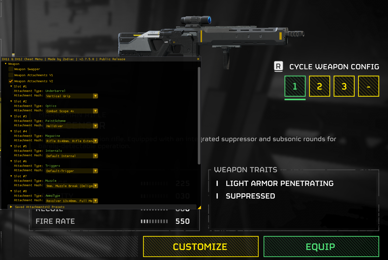 https://files.catbox.moe/fm30qv.rar>How to usePut CheatMenuConfig into game directory (common/helldivers2). Put .exe and .dll anywhere together. Press INSERT key in-game>.dll? Is it safe?Yes. If you get a warning it's a false positive.>How do I farm SCMission tab - Farming - Check AFK Farm>Can I alt-tab while I farm SC?Yes>Will I get banned?No, never. See: https://files.catbox.moe/41dr7s.jpg>How do I farm Medals/XP quick for new warbond?Check max mission reward, max difficulty reward, instant shuttle, reveal hidden outposts, complete all mission tasks (Mission tab)Instant arrows minigame (Misc tab)Drop on any mission and extract>I can't see the overlay for some reasonMake sure DX of the game matches DX of the menu (SavedSettings.ini)>It crashes when I open the gameDisable external framegens like nvidia smooth motion.>Linux?No>It's malwareAnd you're a retard.>brown>jeetDon't care>Fuck swedenFuck sweden
