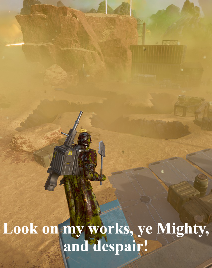 >>560969154Genuinely still astonished as to why they cut them. They fit this game way better than the Current squids. >gameplayEvolution of HD1 squids with harassing you with lasers while elite units teleport around you to jump you. Keeping you on the move.>NarrativallyThe consequence of Super Earths imperialism. As now the Squids, these proud enlightened badasses, reduced to refugees scrambling to regain their former glory. Resorting to rituals with dark matter, and even necromancy, just to keep their species alive. Tragic, compelling, and interesting.Instead we have...these guys:>GaneplayJust kind of a shitty hybrid of bugs and bots but arent good at either. They shoot at you but not enough to overwhelm you. They swarm you, but their chaff isn't threatening. They kinda alharass you with lasers, but its only the Harvesters. And their elites are too sluggish to be a real threat.>Narrativally They're still very technologically advanced, considering they have Gundams, and biotechnology. In fact, they havent seem to have lost anything, considering they have enough resources to invade super earth, fail, and then be completely fine. And they attacked first, making Super Earth the VICTIM. As well as kidnapping and brainwashing billions of civilians. They are the AGGRESSORS, completely flying in the face of Super Earth being the most comically evil government ever. >But muh 100 years ago...No. The 6 million doesn't justify invading your enemies 100 years after the war ends.>but muh meridian wormholeThe squids noticed a portal opened and almost immediately invaded, befkre Super Earth knew they were there. literally pre-emptive self defense. Its a weirdly Super Earth move.>>560969339Same. Wizard alien ninjas. *Sigh*