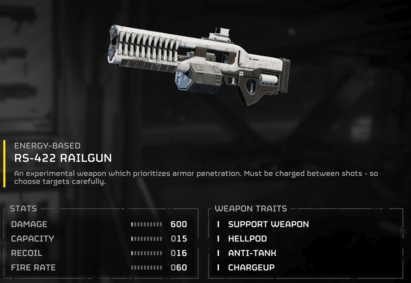 >de-escalator actually works really well against the squids nowI wrote this thing off before but it ain't too bad now that it doesn't take an age to reload. Just wish the arcs bypassed overseer ablative armor because they're unreasonably tanky against it, it's like 4 shots to kill them and the same amount for the mechs