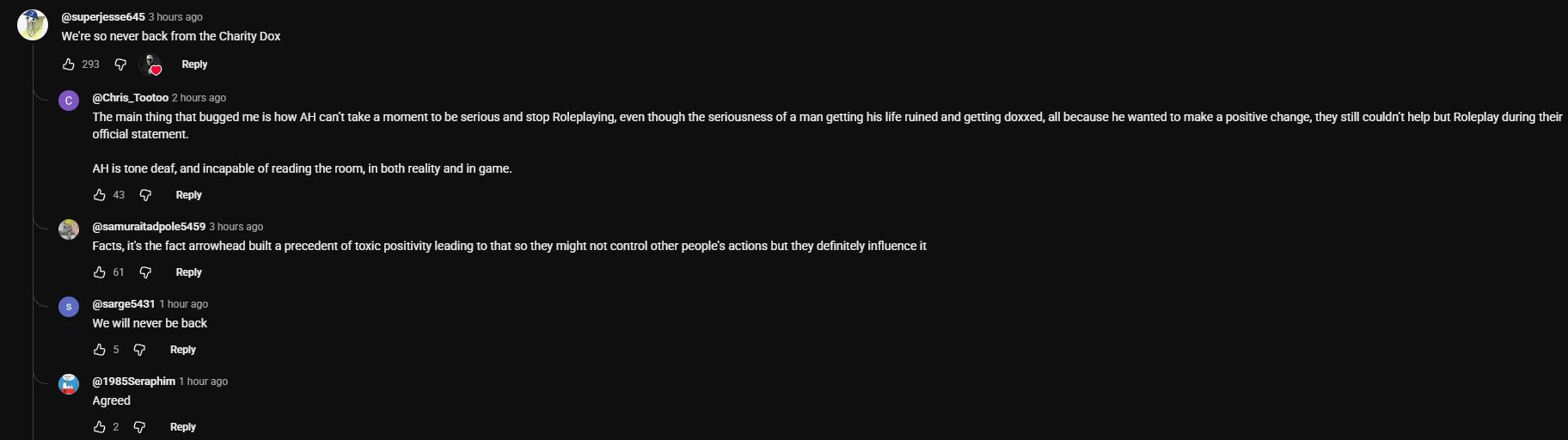 >>561011661It is what it is. The redditors who caused it are subhuman and AH was never gonna have more than blanket corpo speech.