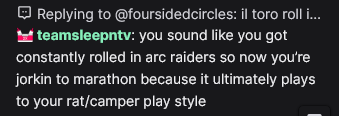 >>560993772I was playing with some friends who have it on and i sometimes hear them laughing.>"This ain't arc raiders, buddy!"What was that?>"The rook was begging for his life"LOL