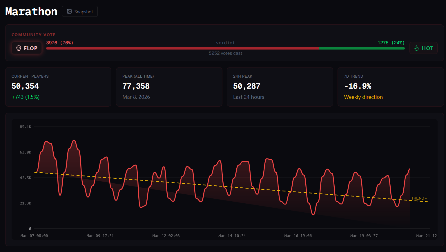 >Game Info:https://store.steampowered.com/app/3065800/Marathon/>Marathon Game Home Pagehttps://www.marathonthegame.com/>The Entire History of Marathonhttps://www.youtube.com/watch?v=yu7uN6-lNhk [Embed]https://marathon.bungie.org/story/>Play the Original Marathon for Freehttps://store.steampowered.com/app/2398450/Classic_Marathon/Databases:https://tauceti.world/https://tauceti.gg/https://marathonmeta.gg/https://marathondb.gg/News:>RECENT PATCH NOTEShttps://www.bungie.net/7/en/News/Article/marathon_update_1_0_5>SEASONS & ROADMAPhttps://www.bungie.net/7/en/News/Article/introducing_seasons_marathon>MARATHON OST VOL. I & II OUThttps://music.youtube.com/playlist?list=OLAK5uy_n3mqJXB_rxXOGplviv8tGdXtHDdL9grK4https://music.youtube.com/playlist?list=OLAK5uy_k_FhqMdjI4UChXwooy0VROM84xgCi8JM0>BATTLEPASS UPDATEDhttps://www.youtube.com/shorts/xnRC9IxTkJo>RANKED DETAILShttps://x.com/TauCetiGG/status/2033929468713308638>CRYO ARCHIVE DETAILShttps://www.bungie.net/7/en/News/Article/cryo_archive_overviewPrevious Run: >>560926737