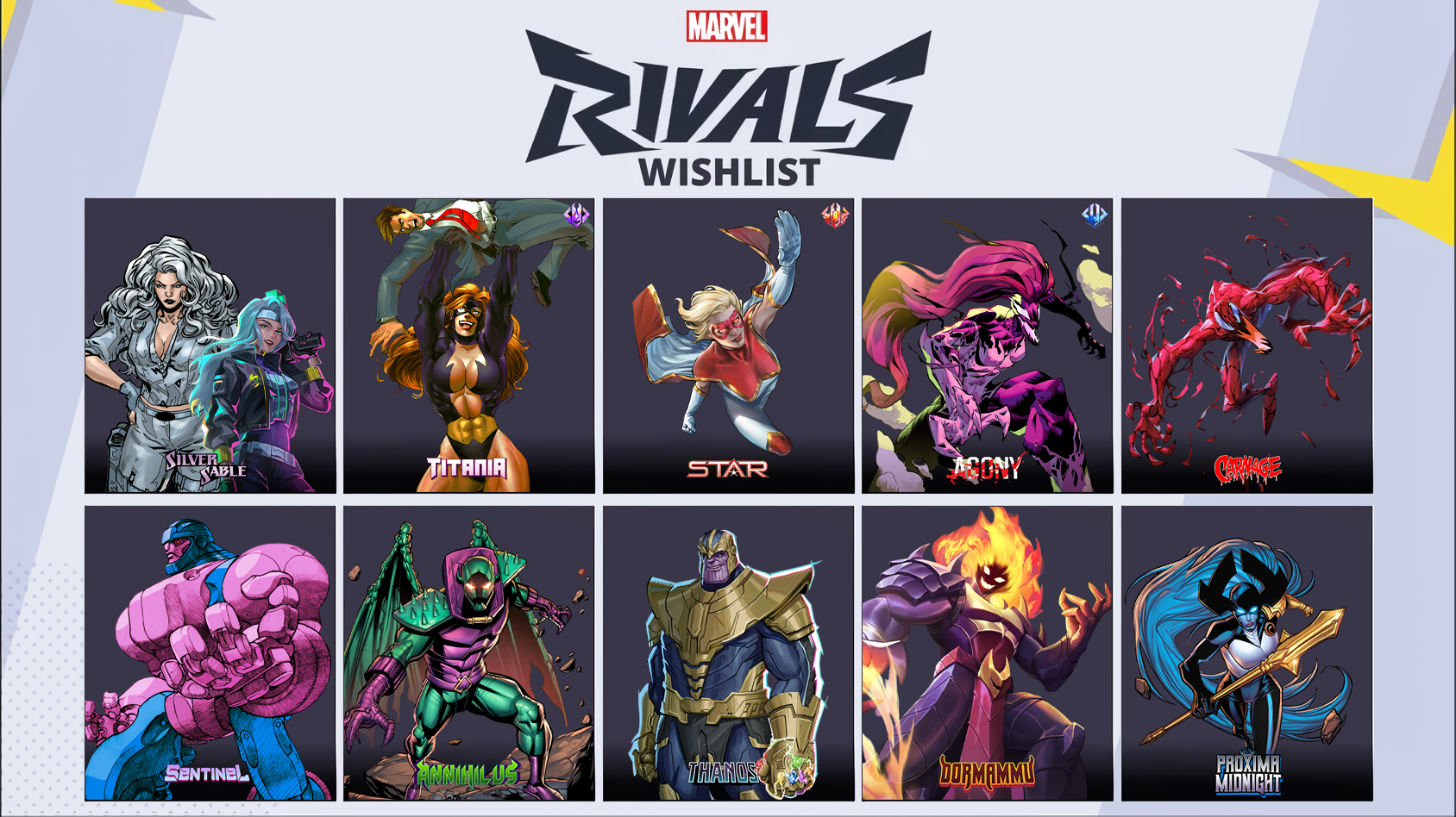 Godtron edition>NewsWhite Fox Character Reveal: https://youtu.be/esb1CBW2WK8Dev Vision Vol. 15: https://youtu.be/fu8_U1mWGZASeason 7: The Hunt Is On Official Trailer: https://youtu.be/HdG4elTlDv8Version 20260320 Balance Post: https://www.marvelrivals.com/balancepost/20260316/41667_1291227.htmlWedding Wishes for Mr. and Mrs. X event: https://x.com/i/status/2021615210369585274Season 6.5 Roadmap: https://x.com/i/status/2021660509032886284Citizenship of Monster Kingdom Event: https://x.com/i/status/2021313221949362270Map Reveal: Museum of Contemplation: https://youtu.be/AWEtIaKvs5w>StoreAdam Living Tribunal: https://x.com/mmmmmmmmiller/status/2034315896953692164Punisher's Marauder Marksman: https://x.com/i/status/2033996794342838398Ultron's Odinforce Ultron skin: https://x.com/o/status/2033981697981546574White Fox's Yoon Ji-woo: The Leader skin: https://x.com/i/status/2033966601918181456The Thing's Fear Itself and Daredevil's Born Again Season 2 skins: https://x.com/i/status/2031407298669666551Psylocke's Once-Captive Corsair & Captain America's Cursed Captain skins: https://x.com/i/status/2029738798007886162Phoenix's Seat of Spring and Moon Knight's Eclipse Knight skins: https://x.com/i/status/2023804865076490548Emma Frost's Black Queen of the Marauders and Iron Man's Iron Mariner skins: https://x.com/i/status/2023427159608443189Elsa Bloodstone's Young Blood skin: https://x.com/i/status/2021283027888787955Magneto's Seat of Autumn and Groot's Mecha-Flora skins: https://x.com/i/status/2018353919567483073Angela's Ace of Spades and Emma Frost's Queen of Diamonds skins: https://x.com/i/status/2016179585172361629>LinksHero Hot List: https://marvelrivals.com/heroes_data/Guides & News: https://marvelrivals.gg/Tracker Resources: https://rivalstracker.comMobalytics Page: https://mobalytics.gg/marvel-rivalsFANDOM Wiki:https://marvelrivals.fandom.com/Previously, on /mrg/: >>560914269