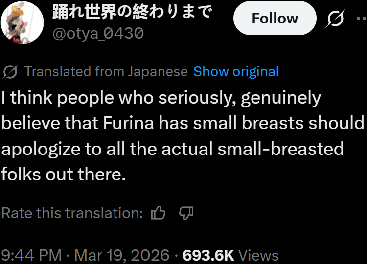Anytime someone tries to tell you the JP dub is better just remember JP Furina eats her spaghetti with ketchup. Fucking disgusting.