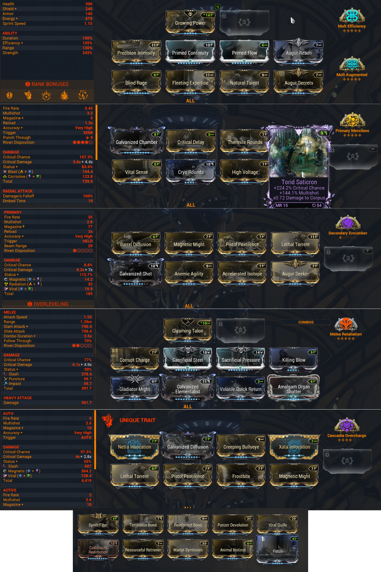 >>561009506Stat sticks don’t matter Your archgun can have the 2 primary and secondary dexterity arcanes and you get 15 seconds of combo for freeDo you really wanna use Dante? I feel like he lacks the DPS and about immortality might as well just use Revenant. Unlock the exilus.Torid build is midNukor build is bad, it doesn’t show progenitor but it should be magnetic or impact, and if its magnetic why the fuck you slapped in Magnetic Might and even more Accelerated Isotope. Galvanized Diffusion exists.Shit glaive build, might as well use a zaw with exodia contagion>Using his exaltedPrimed Animal Instinct existsMax your mods