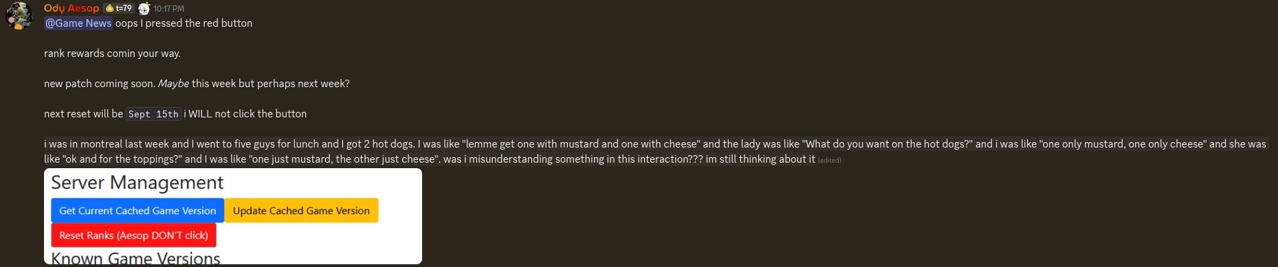 >>564059397oh hey 0a6 its been a whilewell there was just a ranked resetaeslop said he did it accidentally