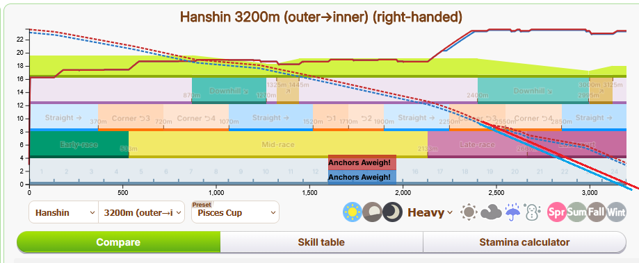 >>561022214Everyone has delayed spurt because the game doesn't factor downhill mode when it checks your spurt. So when you're on umalator and you see picrel dotted lines for stam and wonder why you're not getting a perfect spurt, its because the game is basing your spurt on the solid lines i've drawn in, then downhill wit mode is outperforming expectation.