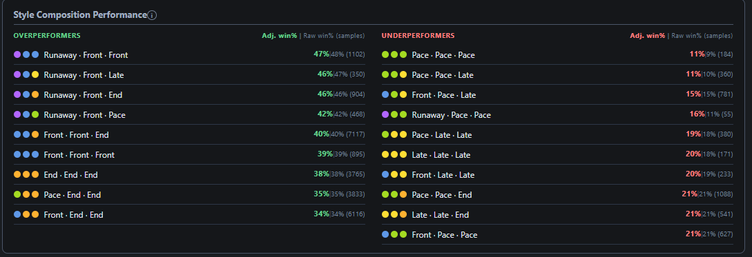 end closers was the biggest gaslight of this CM, not the staminadoesn't matter if you have 1200 stamina, everyone has a delayed spurt rate here, but fronts and pace are already on the lead so by the time they spurt, your end closer will not catch up ever, they just can't it happens too late, so the front and pace always win
