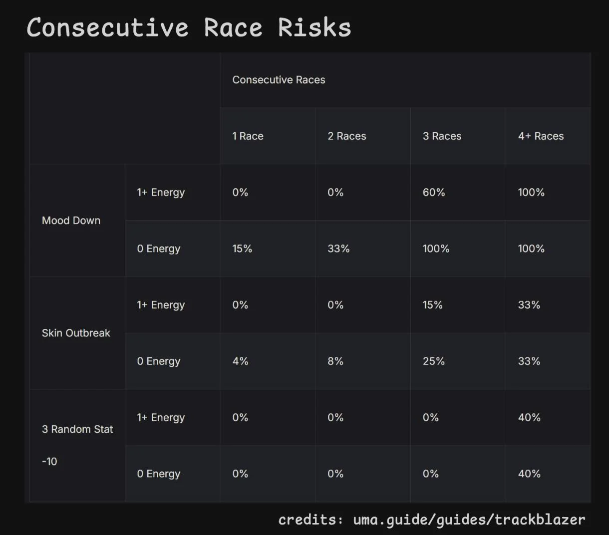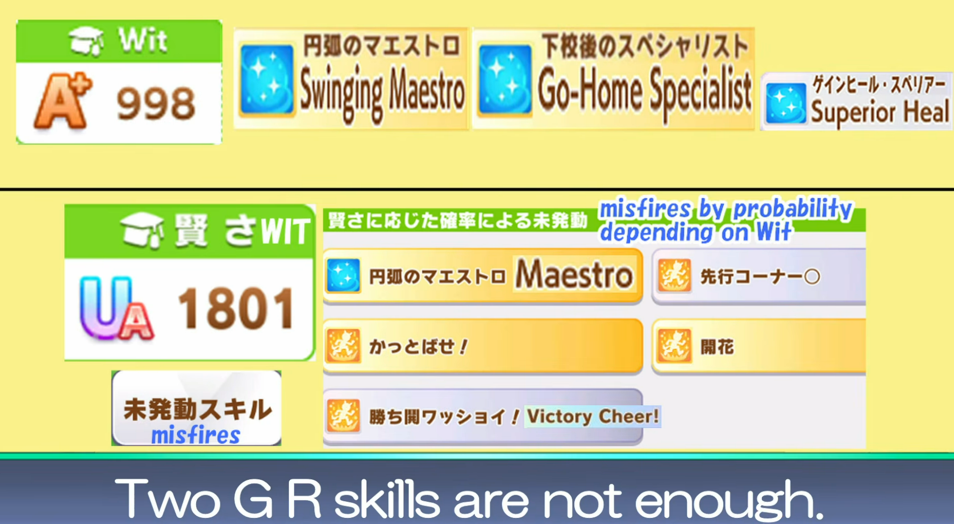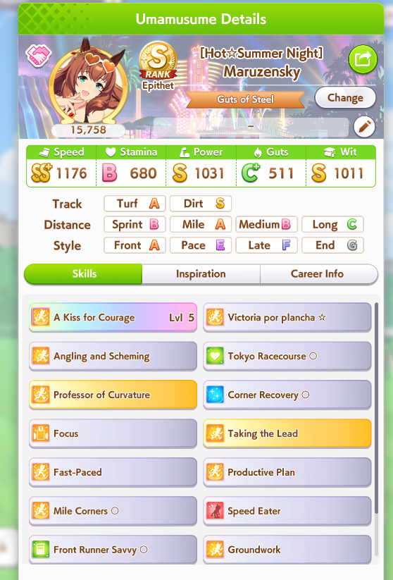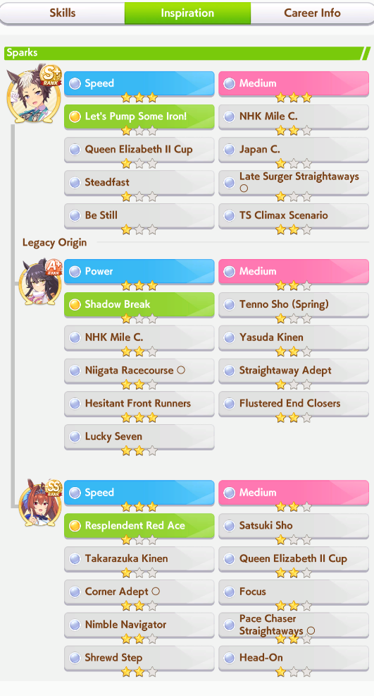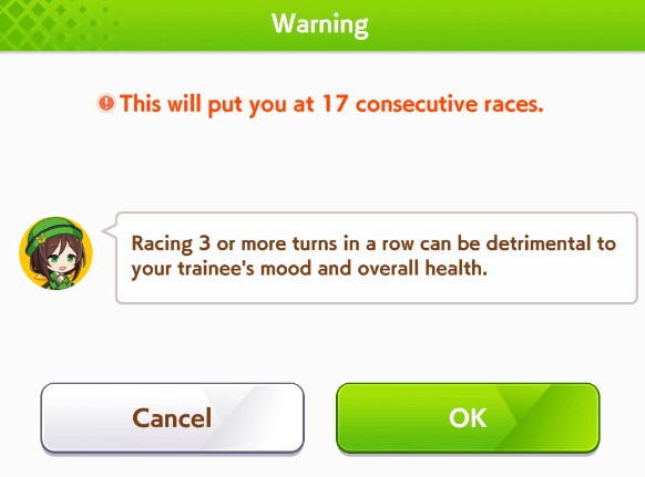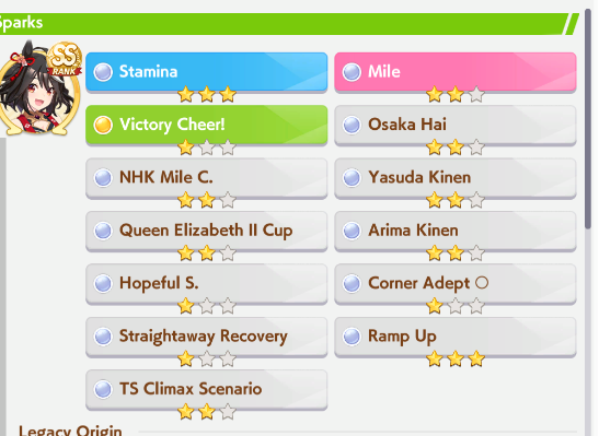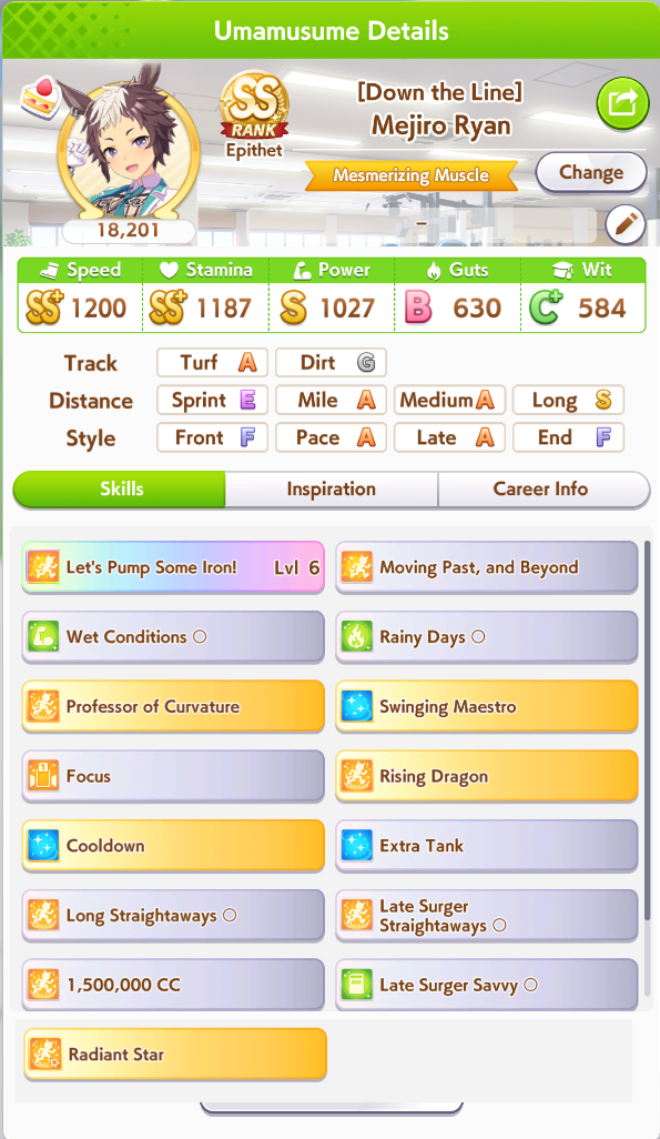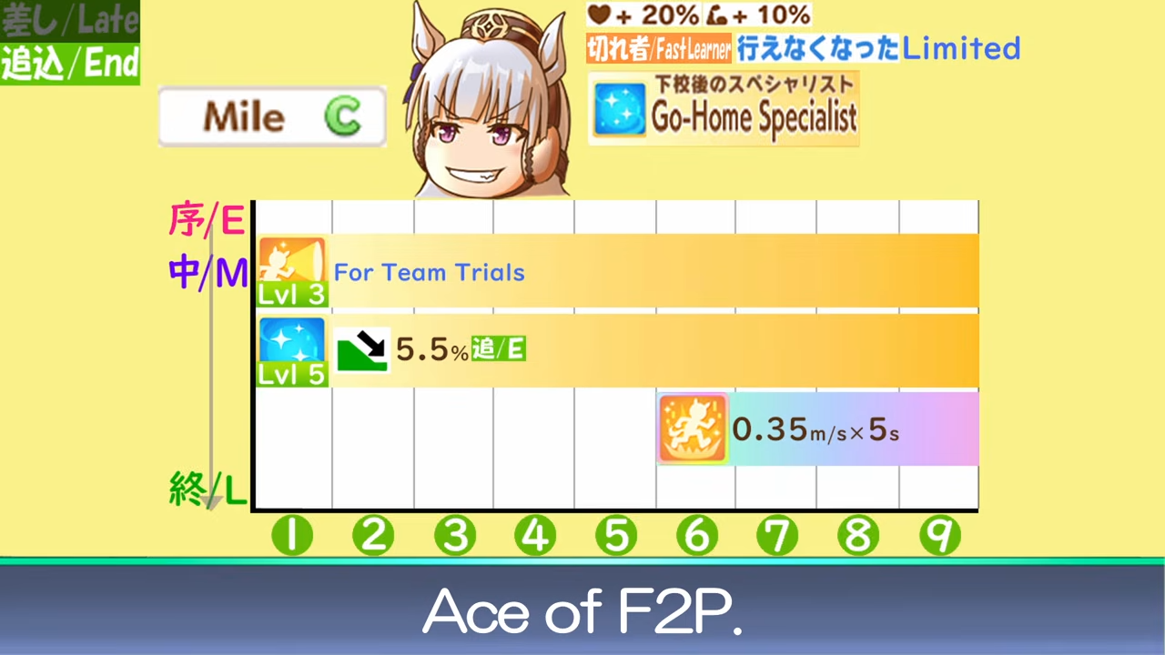 > Be manhattan cafe> Only redeemable quality is that you get long corners and straightaways> Literally just a long horse> Long CM is once per scenario> MANT releases> No more long straight or corners> Be utterly gimped because mile F> 7 mile + 4 end sparks means only a single parent for long sparkSeriously, her only raison d'etre is to be used once every 4 months. And she is completely shit to build in this CM.