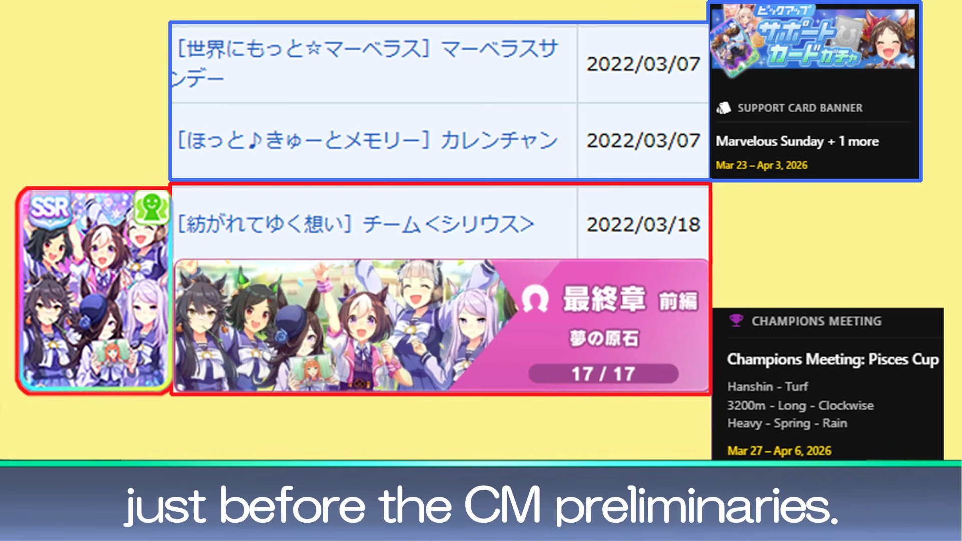 it is 2026 and we are once again re-litigating the fact that umamusume pvp is not actually well tuned for varied competitive playnext two cms are two mediums, can you guess CAN YOU ALREADY FEEL IT IN YOUR BONES WHAT IS GOING TO HAPPENCAN YOU SMELL THE RERUN