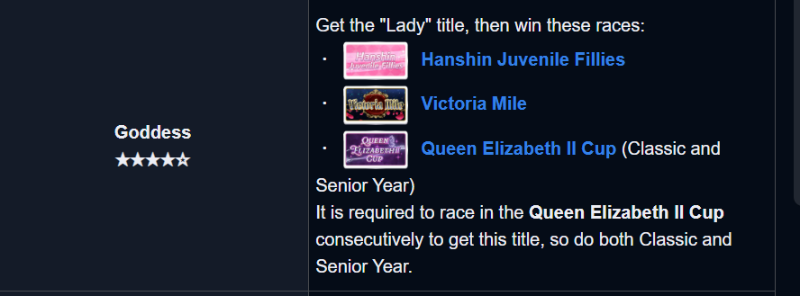 >>561034567Oh ok the Lady title is the Triple Tiara title, hopefully I manage to hit SS following these things