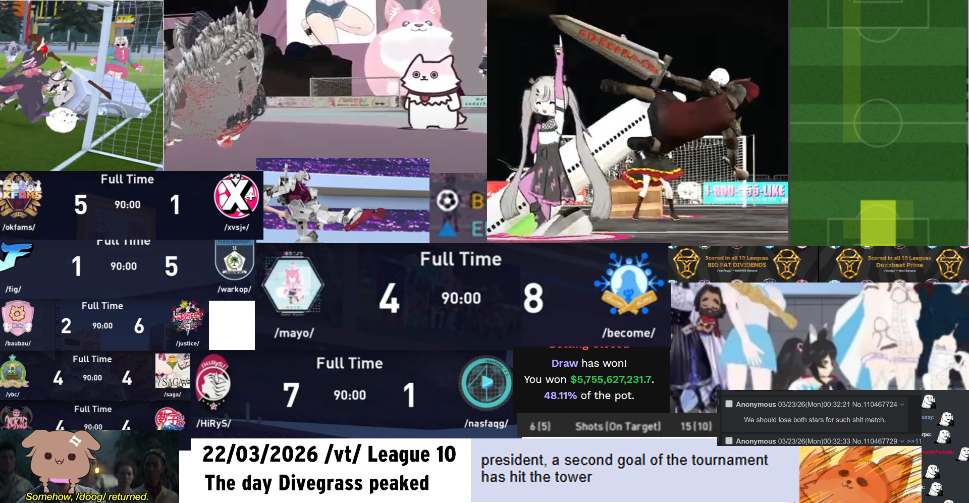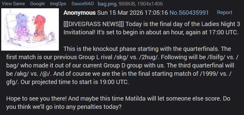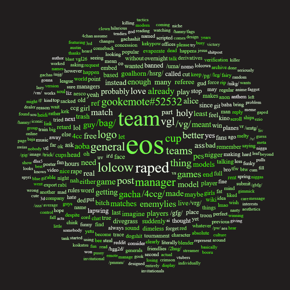 Previous: >>560784317>What... is this?Put simply, a simulation of Pro Evolution Soccer being competed between teams which are embodiments of boards of the 4chan imageboard. The players represent facets of each board's culture. All of the matches are AI versus AI. However, humans "manage" each team, creating their tactics and giving input during games as they happen to make substitutions and tactical changes as they see fit.https://implyingrigged.info/wiki/FAQ>Where can I watch the cup?https://isthisliv.com/4cc/stream.html>Ongoing Invitationalshttps://implyingrigged.info/wiki/2026_4chan_Spring_Friendlies>Upcoming Cupshttps://implyingrigged.info/wiki/2026_4chan_Spring_Babby_Cuphttps://implyingrigged.info/wiki/2026_4chan_Summer_Cup>Upcoming Invitationalshttps://implyingrigged.info/wiki//vg/_League_26_Enemylieshttps://implyingrigged.info/wiki/Very_Genuine_and_Legit_Vidya_Game_Leaguehttps://implyingrigged.info/wiki/Test_Cup_V_18.1https://implyingrigged.info/wiki/2026_4CC_Champions_Leaguehttps://implyingrigged.info/wiki//ag/_League_9/11:_Never_Forgethttps://implyingrigged.info/wiki/Beta_Bowl_4>Wiki:https://implyingrigged.info/wiki/Main_Page>Sekkrit Code37pebis>DLC Passworddivegrass>Booruhttps://isthisliv.com/booru/>Archivehttps://implying.fun/>Other videoshttps://implyingrigged.info/wiki/Videos>PES Infohttps://implyingrigged.info/wiki/Pro_Evolution_Soccer_2015https://implyingrigged.info/wiki/Pro_Evolution_Soccer_2021>Previouslylolcow debate/sora/ShitpostingChuck o7