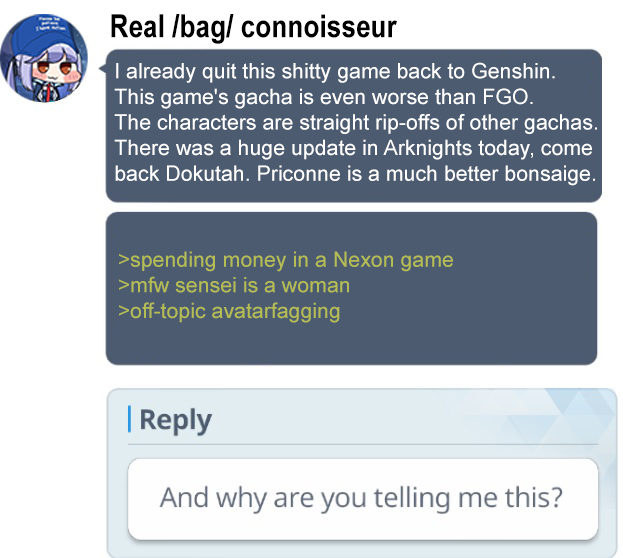 Traitor man made Red Archive so Blue Archive should be untouchable slop for you now, but integrity isn't something things like you have
