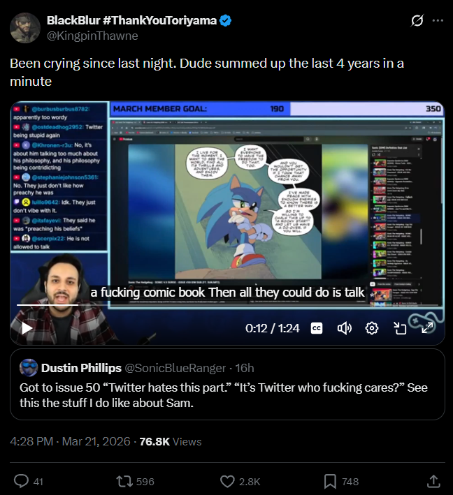 Welcome to Sonic the Hedgehog General! Here we discuss all things Sonic!/sthg/ #9177 - AAAIIEEEEE TAILSU SAMA STOPPPUU Edition==NEWS==>Sonic the Hedgehog's 35th anniversaryhttps://www.sega.com/sonic-the-hedgehog?tab=35th-anniversary>Sonic the Hedgehog 4 to release on March 19, 2027https://x.com/SonicMovie==Comic Release Dates==Sonic the Hedgehog #86 - 08 April 2026DC x Sonic the Hedgehog: Metal Legion #1 - 06 May 2026Sonic the Hedgehog #87 - 13 May 2026Sonic the Hedgehog x Godzilla #1 - Summer 2026Sonic the Hedgehog: 35th Anniversary Special - 15 December 2026==GENERAL INTEREST LINKS==https://rentry.org/sthglinks>Milestone pastebin:https://pastebin.com/LJCfZhY4>Sonic Game/Mod Recommendation Spreadsheet:https://rentry.org/sthglinks#sonic-gamemod-recommendation-spreadsheet>Perfect System Collection:https://rentry.org/sthglinks#perfect-system-collection>Sonic comic scans:https://rentry.org/sthglinks#comics>Sonic shows:https://rentry.org/sthglinks#shows>SAGEhttps://sagexpo.org/>SHChttps://shc.zone/>#10000 Projecthttps://pastebin.com/Fb8Bt4r>/sthg/ booru:https://sthg.booru.org/>/sthg/ CyTube:https://cytube/r/sthg>/sthg/ Pixel World:https://ourworldofpixels.com/sthgPrevious zone: >>560986463