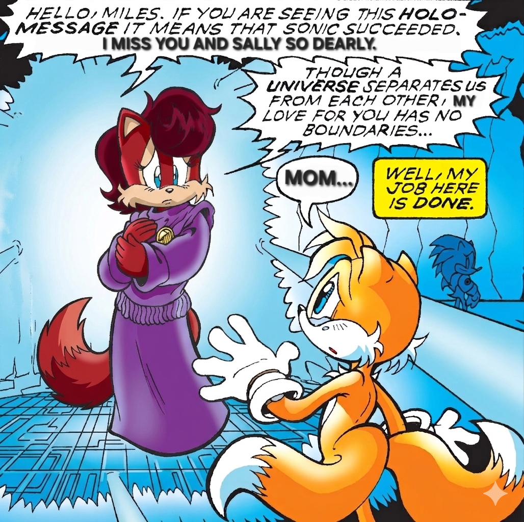 Archie Sonic AU where Rosemary and Max marry and have Sally and when Max dies from a previous war with the Overlanders she remarries Amadeus and has Tails.