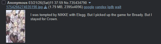 >>561080562I thought Nikke was just Korean Girls' Frontline