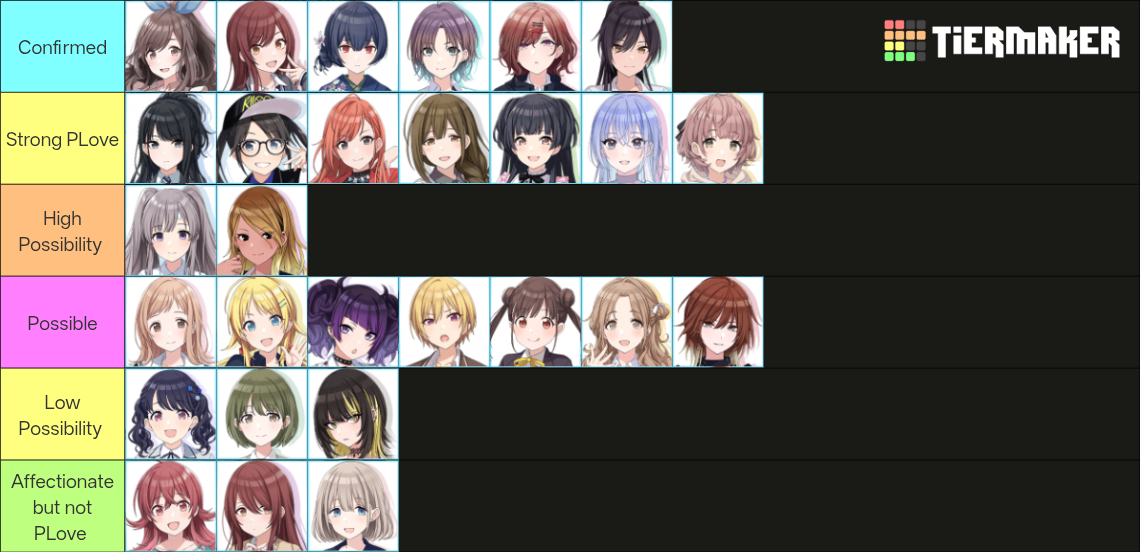 >>561102191Hiori is bordering for them as this is also arranged in order Left to Right I believe. They just don't put her in the confirmed as a meme because of her one line that goes "This is not Romantic Love" which is sorta compared to Sena's "I hate you".