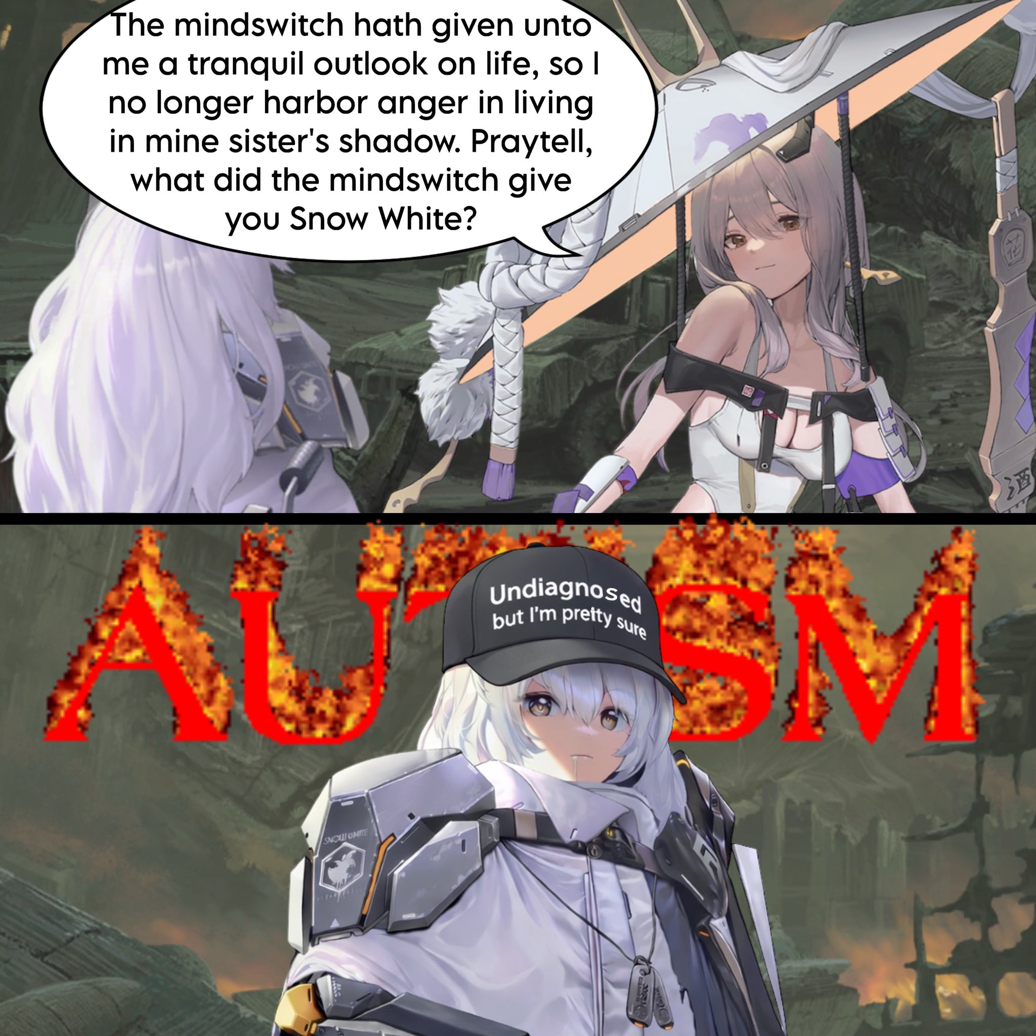 When Scarlet had a minor mindswitch in Ark Guardian it reminded me of the boondocks episode where the teacher is like "How is a nigga gonna borrow a fry? Is you gonna give it back?". That's how I feel about minor mindswitches
