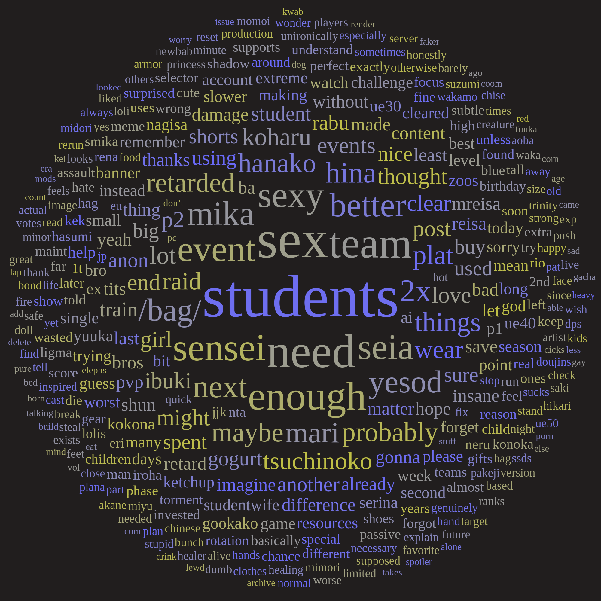 >>561086312You need to remove OP from the word cloud, otherwise you'll always be getting the '2x' and other parts of the OP in the word cloud