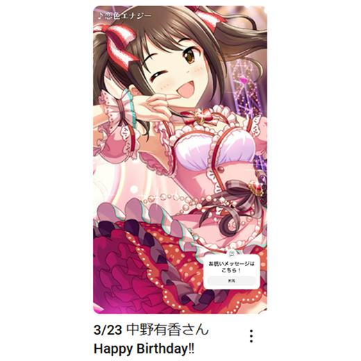 https://x.com/imas_ch/status/2035733246533919204https://www.youtube.com/watch?v=X4Y6TQK-BFsHappy Birthday, Yuka!