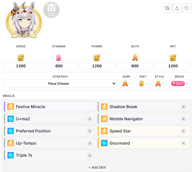 >>561128418My flb gacha SSRS are KSB, Fuku, Riko, Rice, FM. I've done a few runs of mantblazer and those statlines should be easily achievable in few runs. Maybe not 100% but pretty high. Here's a random golshi I did as a scenario test. It's just a test so it has firm course menace, don't comment on it, I wasn't making an ace, I'm not stupid. Fuck you.