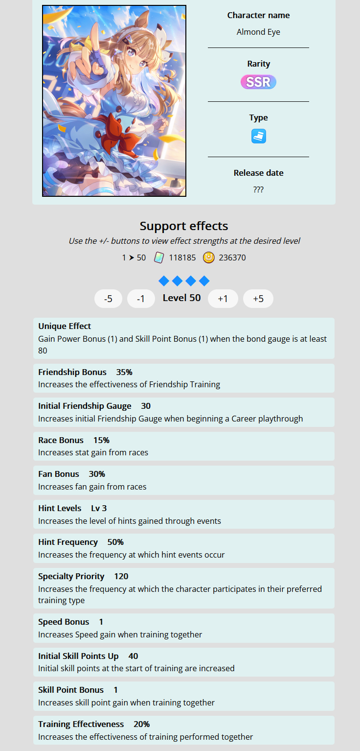 Previous: >>561114793>Global Game NewsLink your account to Cygames iDCurrent Scenario: Make A New Track aka "Trackblazer"Current Rate Up Trainee: Kitasan Black (3*), Matikanetannhauser (2*)Current Rate Up Support Cards: SSR Narita Top Road (Speed), SR Admire Vega (Guts), SR Mejiro Ryan (Stamina), SR Bakushin (Power)Current CM: Pisces Cup - Hanshin Turf 3200mhttps://umamusume.com/news/632/03/02 - 04/14 - Halved TP Cost & 2x Career Mode Rewards03/12 - 04/15 - Paid 3* & SSR Selector available in Carats Shop03/12 - 03/24 - Free Daily 10-Scout03/12 - Flying Run-Up! Story Event03/22 - Satono Diamond (3*), Curren Chan (SSR), Marvelous Sunday (SSR)03/23 - First Anniversary Part 303/23 - Agnes Tachyon, Narita Taishin, Narita Brian legends races03/26 - First Anniversary Part 403/26 - Mejiro Bright (3*), Curren Chan (SSR), Zenno Rob Roy (SSR)03/26 - 04/05 - Pisces Cup - Long/Right/Spring/Heavy/3200https://pages.snep.pw/uma/anni-skill-changes/>JP Game NewsCurrent Rate Up: Victoire Pisa (3*), AI-Chan (3*), SSR Yanko, SSR CasinoNew Scenario "Beyond Dreams" releasedTimeline: https://uma.moe/timelineCygames Webstore: https://webstore.cygames.com/en/umamusume_en/>Thread Clubshttps://rentry.co/umaglobalclublistYou must be E3 (20k points) to join a circle. Apply with /uma/ or /vg/ in your profile or post ID in the thread.>All Guides & Resourceshttps://rentry.org/uma26Game databasehttps://gametora.com/umamusume (Click the gear to switch between JP / global server info)A basic guide for newfagshttps://rentry.org/umaglobalFind networks if your region is blocked from the game or clienthttps://www.umavpn.top/Seiyuu & Concertshttps://rentry.org/umstUmamusume Birthday Calendarhttps://ウマ娘.攻略.tools/events/birthdayUma Texthttps://umareader.idsmile.xyz/