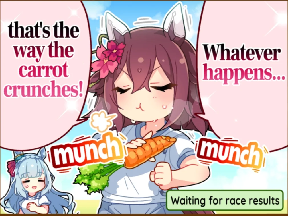 >>561128749I get what you're getting at anon, and yes, you can win long CMs without groundwork......But it WILL improve your chances to win by a healthy amount, the rooms are going to have more than one kitasan, and if your has to blow blast forward just to catch up with someone else, the other kita's blast forward will let them get 1st place. You feel me?