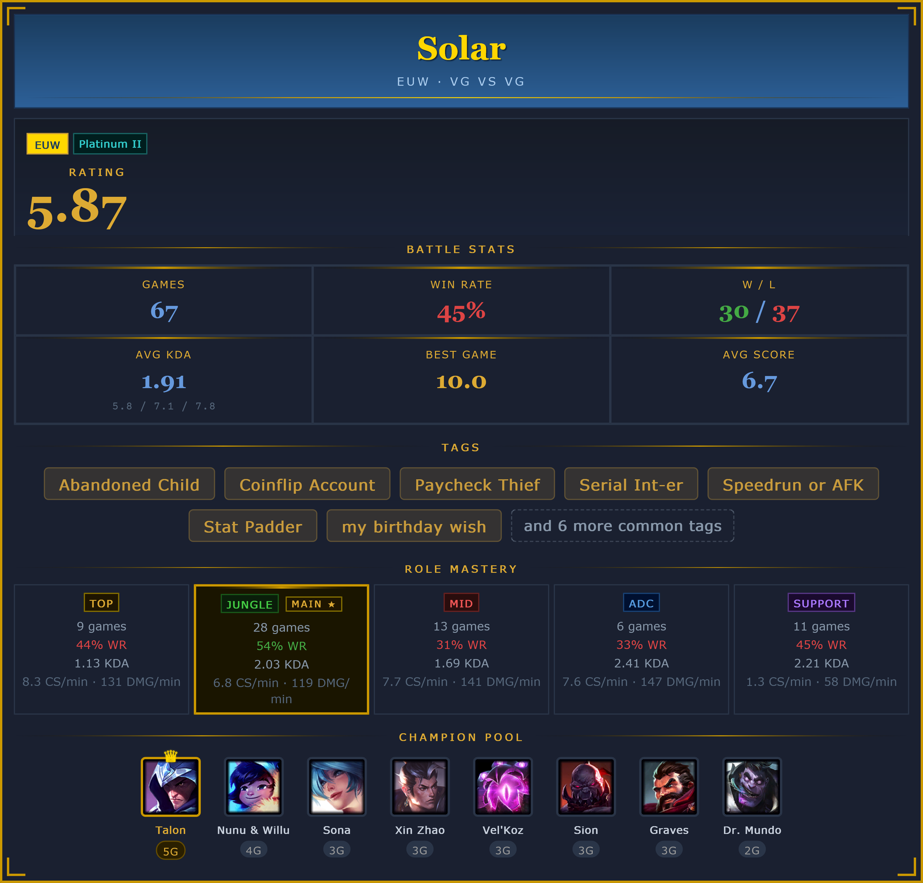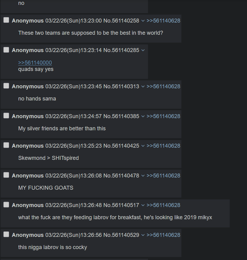 so whos the most to blame for the death of euwvgs, zyrality for streaming and giving sweaty tryhards even more incentive to play vgs like ranked, solar with the ai rankings, juroqo and yordle fondler for being unbalanceable niggers who are obnoxious wild cards every game and neither fun to play with or against, hwei and das for starting this afking bullshit, tehron for making the drama with hweijak ten times worse than it had to be and then starting the trend of locking in op champs, majin for shitting on eu with 200 ping and putting a bad taste in everyone's mouth, i need a boogeyman