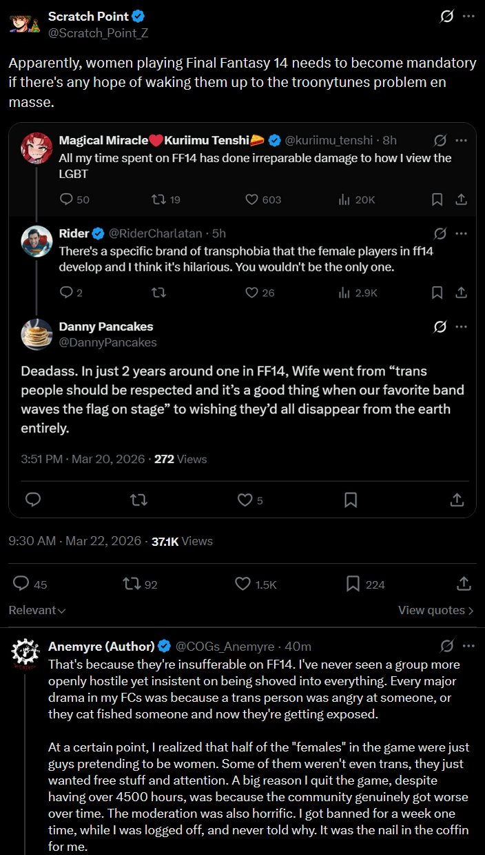 >Patch 7.45 Noteshttps://na.finalfantasyxiv.com/lodestone/topics/detail/2e8a10c44121af50ce86e1b605e10608e15f24d6>Hatching Tide (March 23rd - April 6th)https://na.finalfantasyxiv.com/lodestone/special/2026/Hatching_tide/wgtbl3kgc5>Resourceshttps://rentry.org/xivgresources>Meetups• March 22, 6:30 PM EDT | Materia, Ravana, Empyreum W24 P21 | Male Meetup - Transformers Year One & Jin-Roh: The Wolf Brigade >>560597340 • March 25, 9:00 PM EST | Primal, Famfrit, Lavender Beds W15 P20 | Spooky Club: Knights of Baddassdom and Onyx the Fortuitous >>561014857 • March 28, 12:00 PM EST | Balmung, The Lavender Beds, Ward 8, Plot 2 | Transformers Day of Visibility (Bayformers 1-3 maybe 1-5) >>559485678• March 28, 4:00 PM EST | Mateus, Shirogane, [address will be shared the day of the meetup and a day before] | Femra Meetup >>561067050 • March 28, 5:00 PM EST | Balmung, Shirogane, Ward 10, Plot 13 | Femlala Meetup >>561065236 • March 29, 03:00 PM EST | Crystal, Coeurl, The Ruby Sea (21.7, 9.9) | Deep Dungeon Race Meet >>561066469 April 4, 8:00 PM EST | Dynamisw, Golem | New Alt FC >>561137994Previously on /xivg/: >>561142746