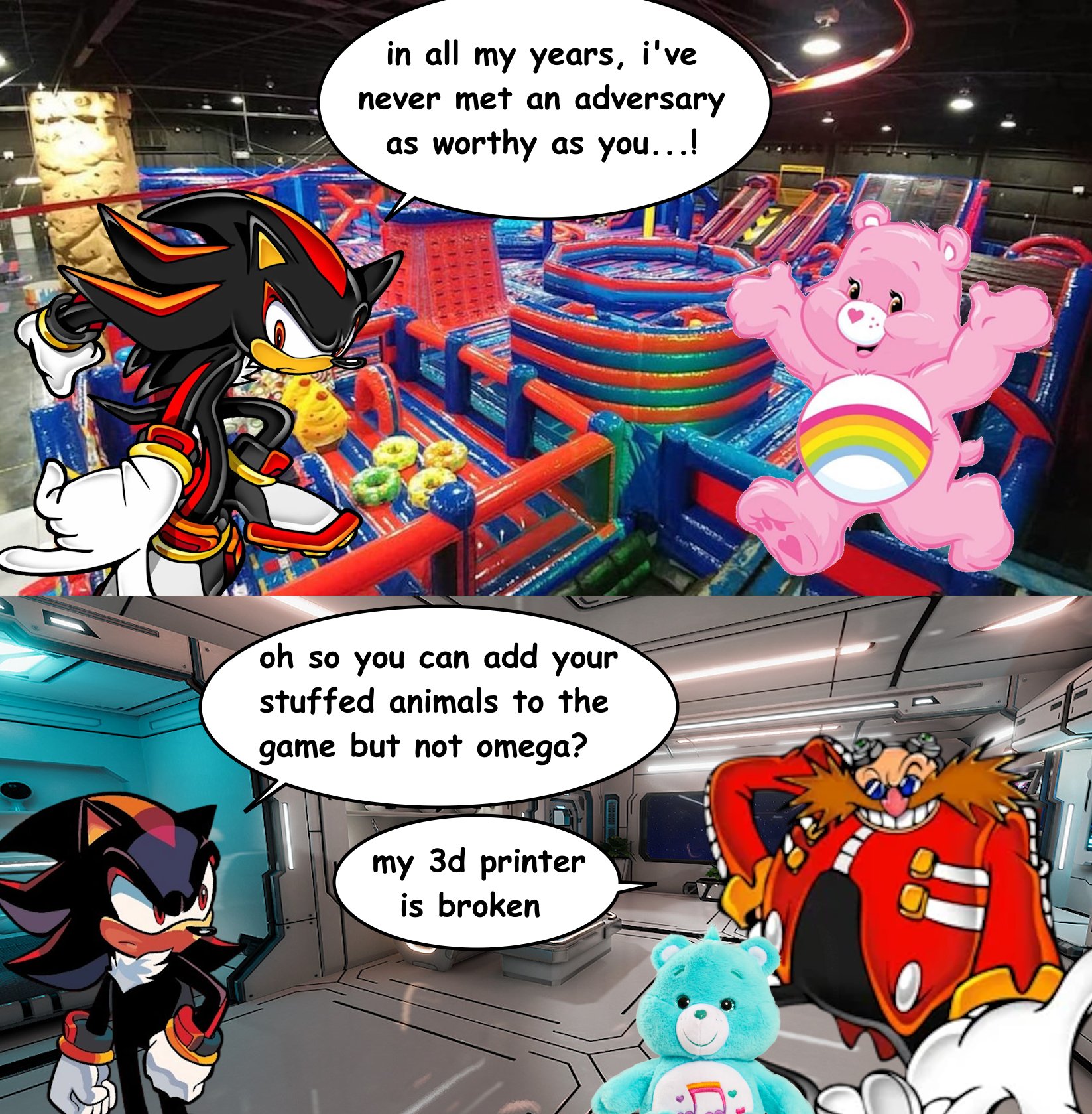 >>561176507>the crossover spam is getting so bad now that the Care Bears of all things are being added to RumbleI could talk about my frustrations that half the game cast are still being ignored in favor of this, but now I'm concerned that something really wrong is going on behind the scenes with Sonic. Is it actually dying for real this time?