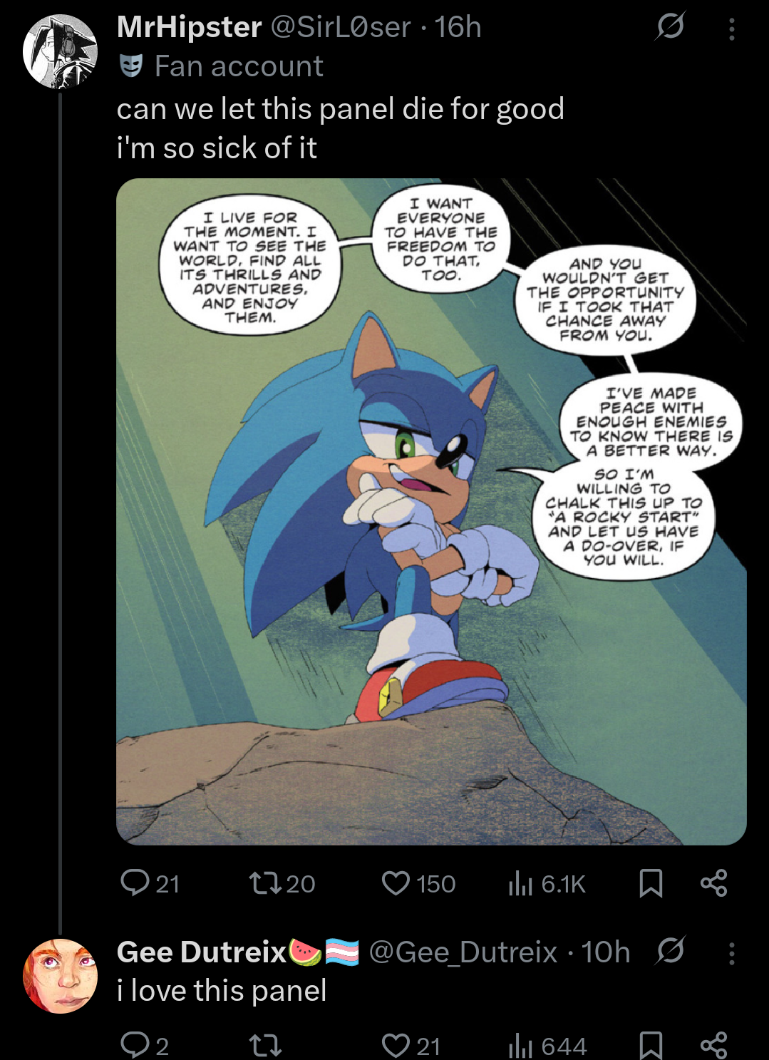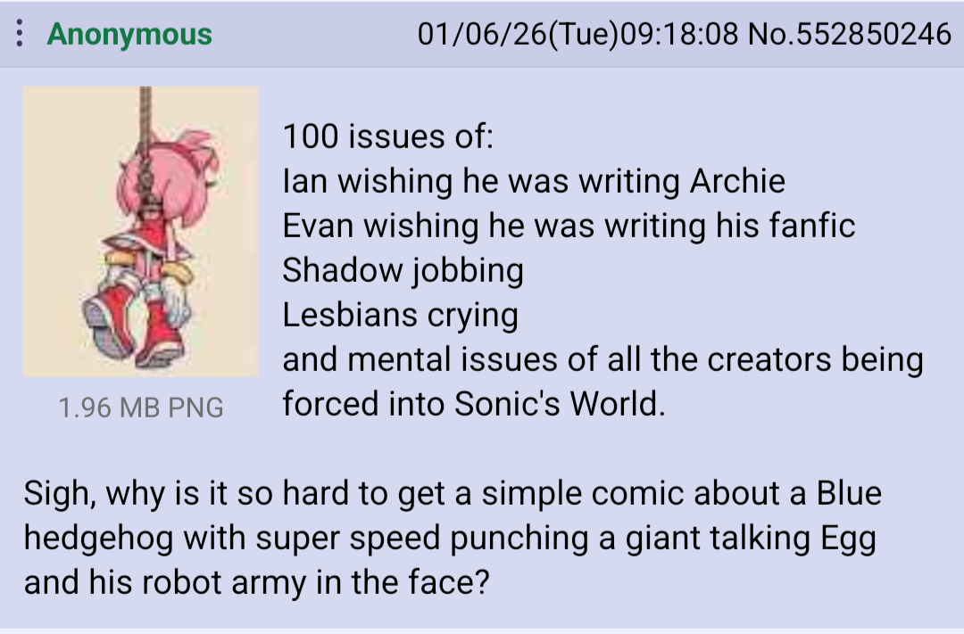 I know that feeling. Sonic as a media as a whole seems to find new rock bottom every five years and my life seems to do the same on yearly basis