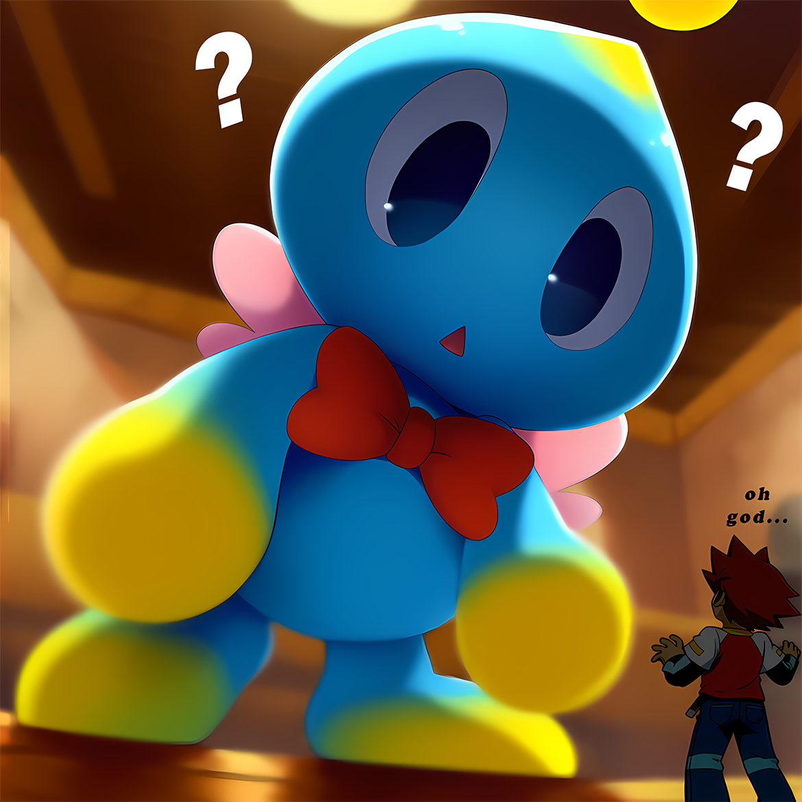 >Along side other canon characters, Spongebob, Chester, Godzilla, Blue Care Bear!