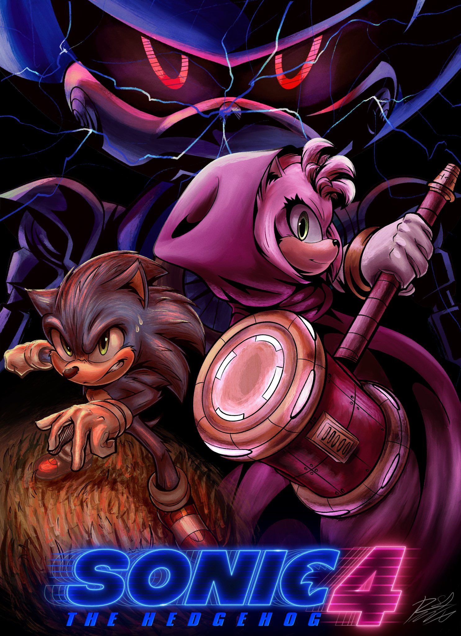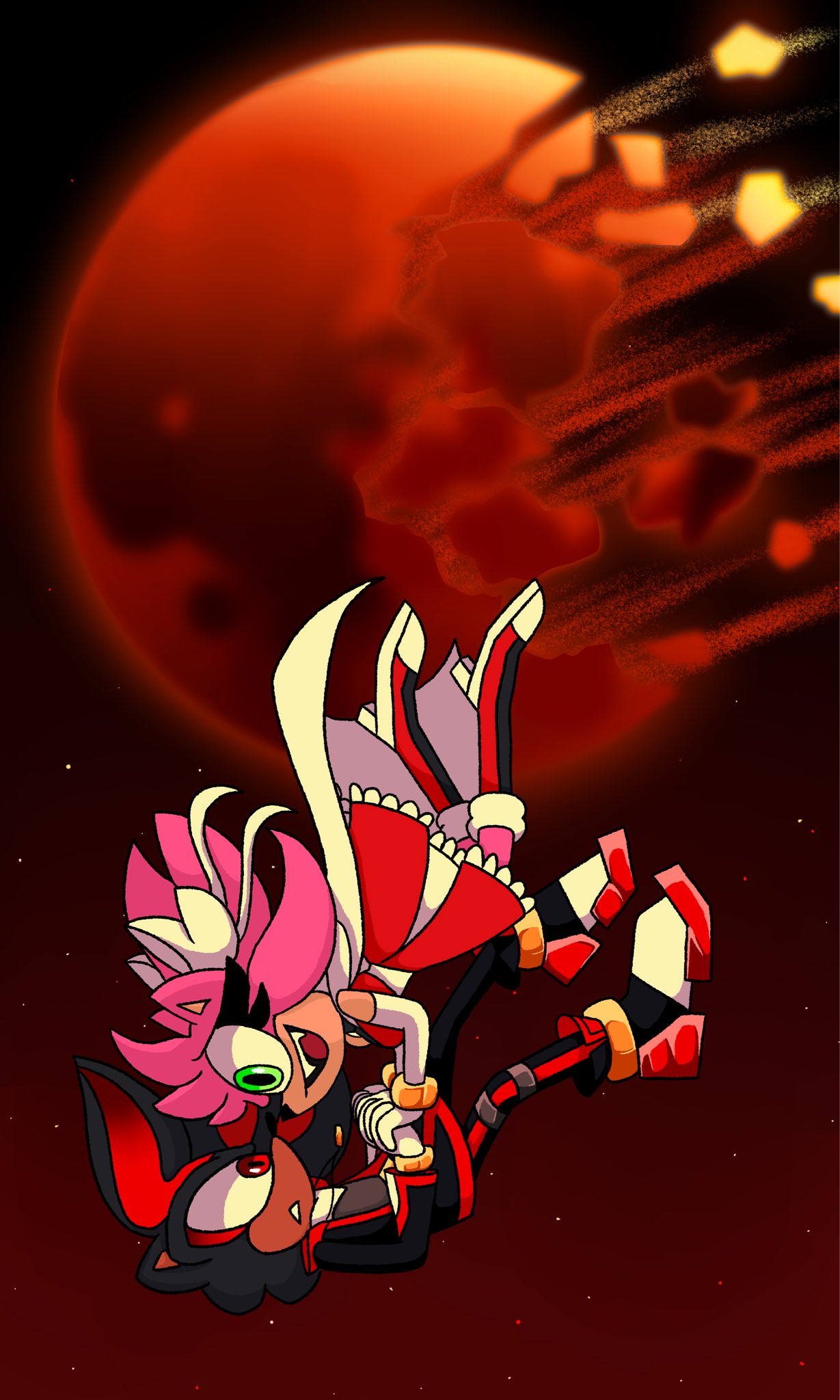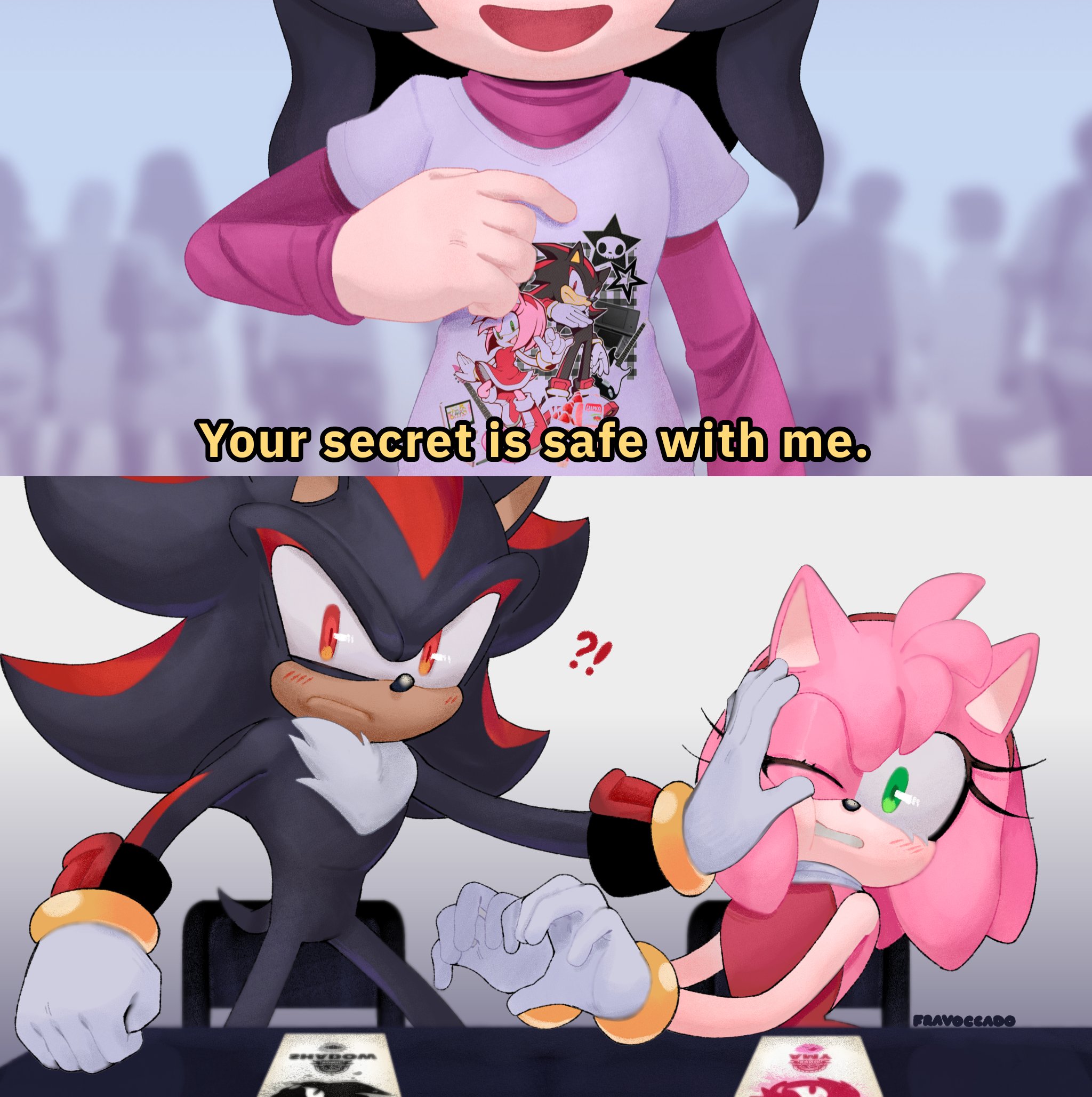 Someone gen Movie Sonic and Shadow with Movie Amy's breasts between them.