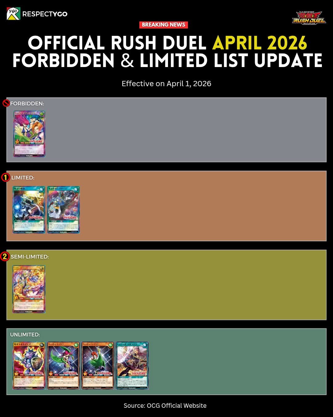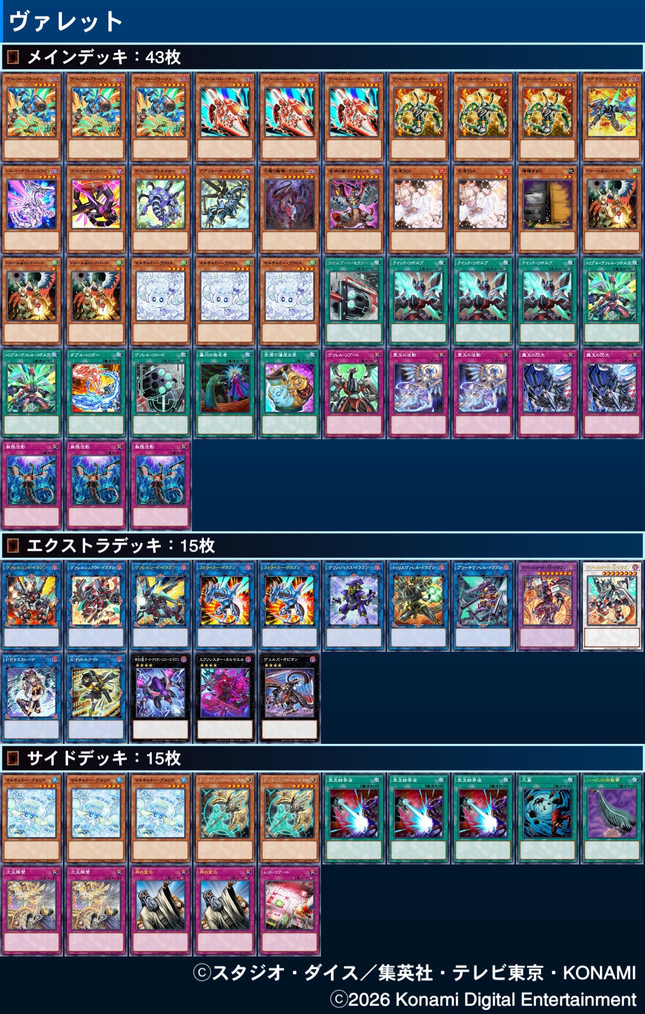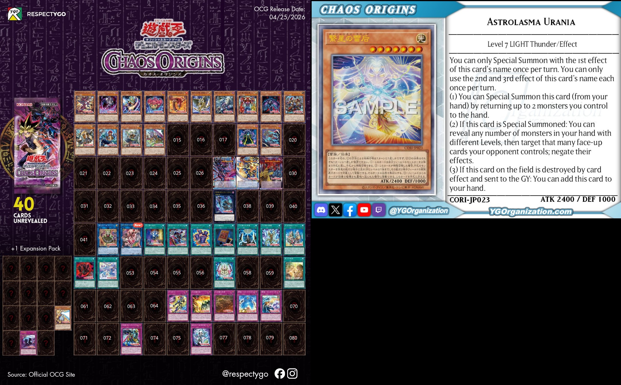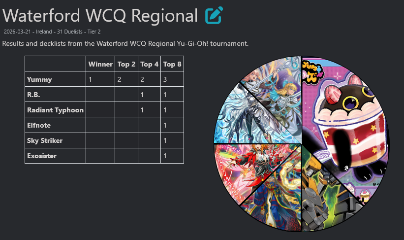 #6791 - Thunder shilling EditionPrevious: >>561149157>SimulatorsAutomated:●EDOPro (PC/Android): https://projectignis.github.io/download.html●Master Duel (Multi-plat): https://store.steampowered.com/app/1449850Manual:●Duelingbook (online): https://www.duelingbook.comTag: “/dng/” Password: “vidya”; on EDOPro, specify server.Genesys Duels: MR5, TCG, Custom Rules: No Links/Pend/EMZ/Pend Zones>LinksRulebook: https://www.yugioh-card.com/en/rulebook/Wiki: https://yugipedia.comProbability Calculator: https://yugioh.fyiStock Market: https://yugiohprices.comDatabase: https://www.db.yugioh-card.comMisc Info: https://www.formatlibrary.comBlog:https://yugiohblog.konami.com/Alt Format:https://www.yugioh-card.com/en/genesys/>BanlistsTCG: https://www.yugioh-card.com/en/limited/list_2026-02-02/ (Feb 2/Next List: TBA)OCG: https://yu-gi-oh.jp/news_detail.php?page=details&id=2488 (April 1/Next List: July 1)>DecklistsOCG: https://roadoftheking.com https://tonamel.com/competitions?game=yugioh_ocgTCG: https://ygoprodeck.com/category/decks/tournament-meta-decks>NewsJP: https://yugioh-starlight.comEN: https://ygorganization.com>Upcoming SetsOCG:●Valuable Book EX6 (Mar 19)●LIMIT OVER COLLECTION -THE RIVALS- (Mar 20)●Chaos Origin (Apr 25)●REVOLUTION BOOSTER -Toon Witchcraft (May 30)●World Premiere Pack 2026 (Jun 27)●Beyond the Brave (July 18)●Deluxe Duel Set - Sky Striker (Late Aug)TCG:●Rarity Collection 5 (Apr 10/Apr 17 for NA/LATAM)●Blazing Dominion (May 8)●Battle of Legends: Glorious Gallery (Jun 5)●Chaos Origin (Jul 3)>Events●Chaos Progression (Apr 5, 2000 UTC):https://challonge.com/DNGChaosProgression1