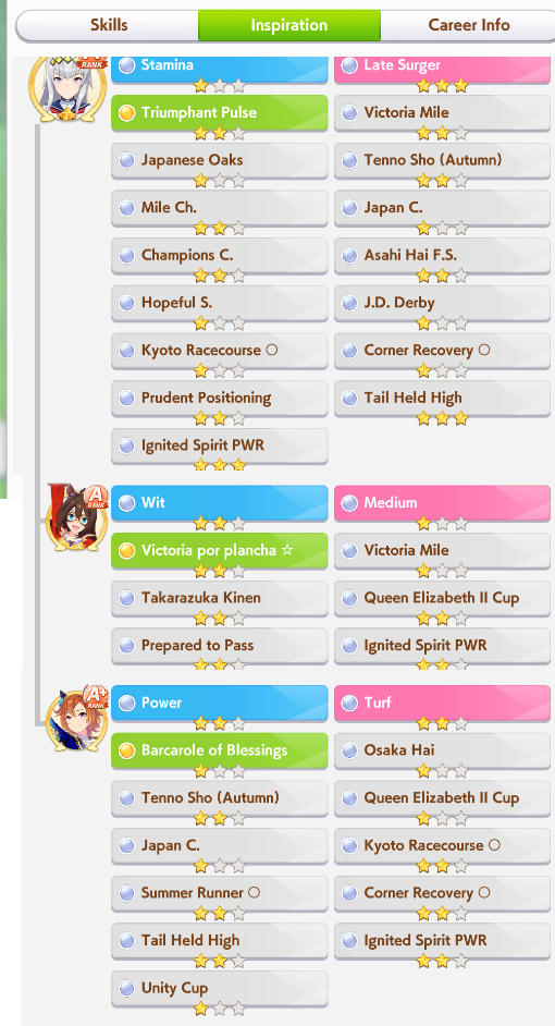 >>561227872Free Speed + Free Wit + Free SP + okay medium skills.Basically it replaces all wit cards including finemo in most decks, so for example guts decks you would now run 4 Guts/Throne/1 Speed or skill card, it's quite easy to cap both speed and wit this way.It lasted for a month in JP (2 weeks for us) then died when Grand Live released because the scenario card Light Hello was required in every deck, plus you couldn't run it with the Teio Wit SSR.The 5th scenario, Grand Masters, came with the Ramonu Wit SSR which replaced Teio.Throne + Ramonu was pretty good because of the scenario gimmick, but again one month later it gets killed when the Three Ancestors SSR was added which also nearly killed the game for the second time because people used their selectors/crystals on throne after cygames promised they doing a scenario PAL card, only for them to add a scenario GROUP card.