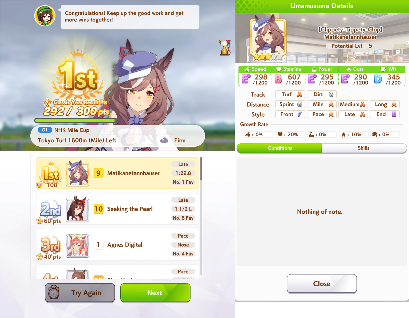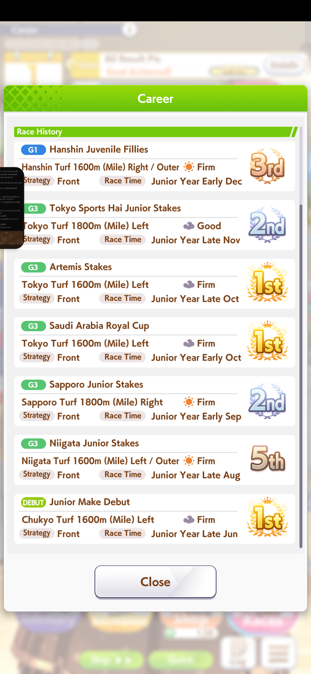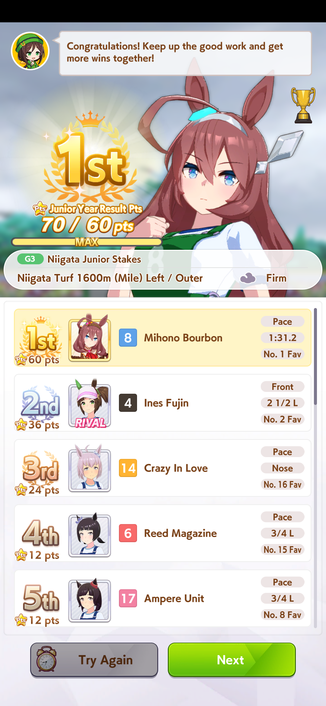 >>561244806Mile A really helps too. I was doing Kita runs last night, finally bit it and brought her to A and borrowed Fuku, that +150 stats massively helped her win all the junior year races