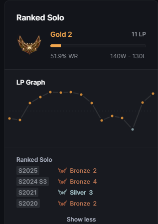 >3k ranked games played in the last 5 years 50% winrate playing straight cancer