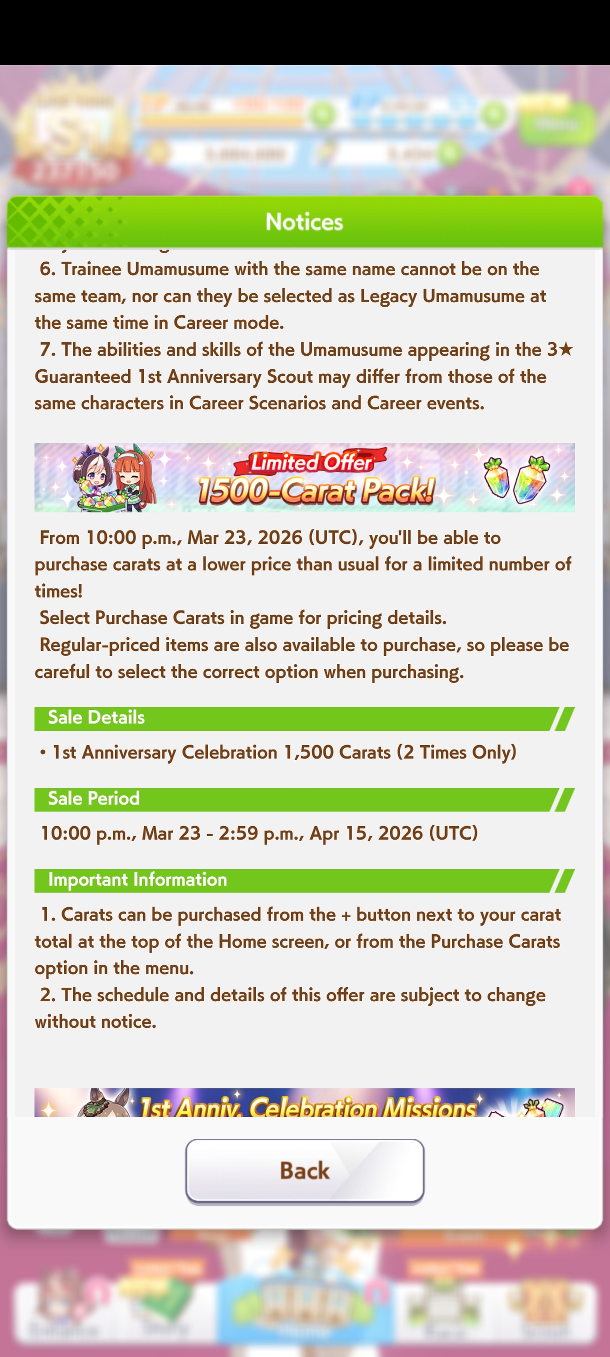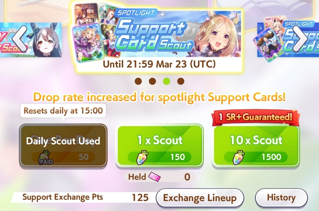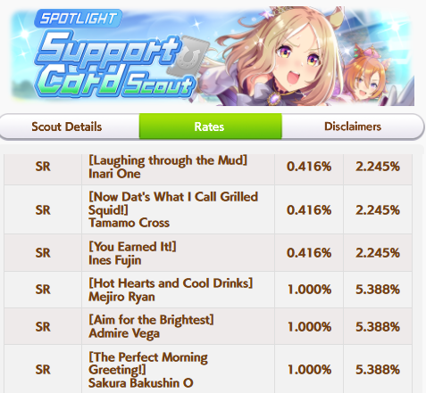 Current Rate Up Trainee: Kitasan Black (3*), Satono Diamond (3*), Matikanetannhauser (2*)