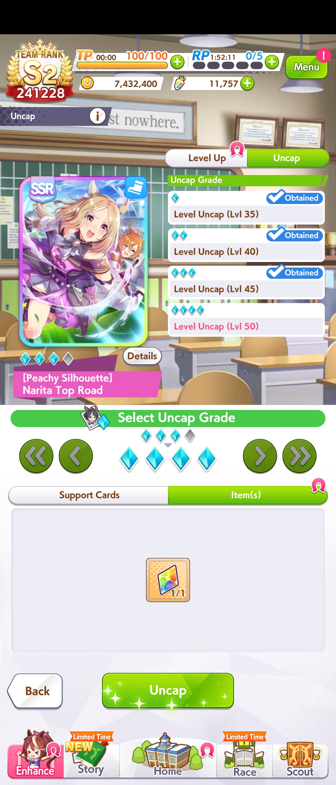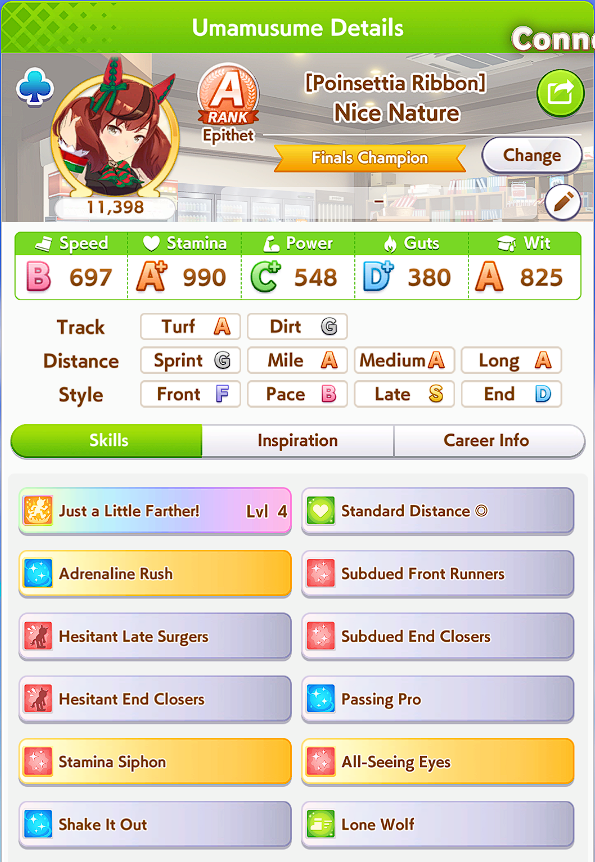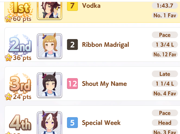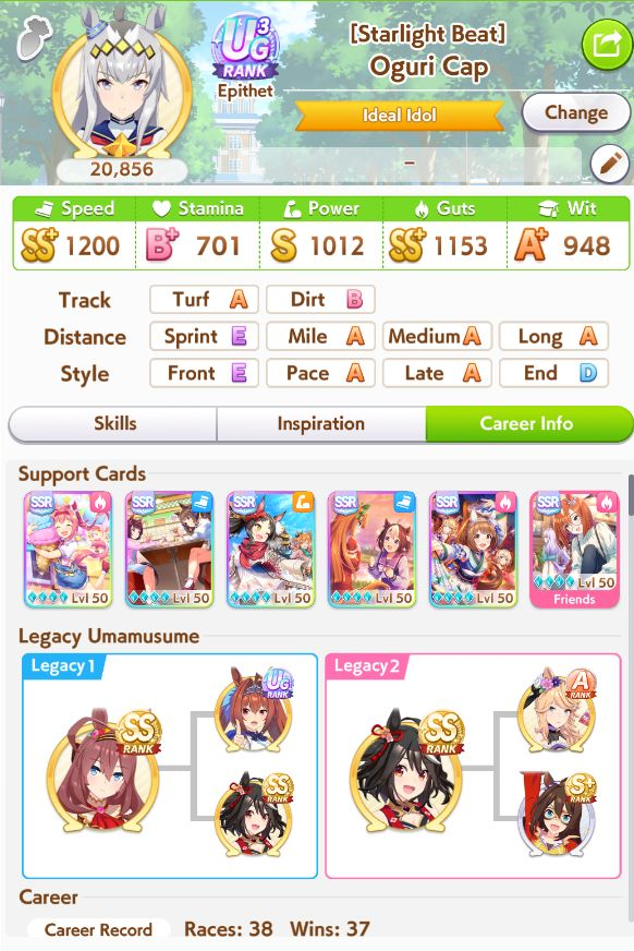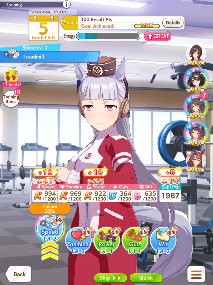 I can’t even get a 1200 speed Uma in this new scenario. I am actually considering a desperation move of selector ticket + rainbow ticket which could get NTR or FM to either MLB or 1 short of