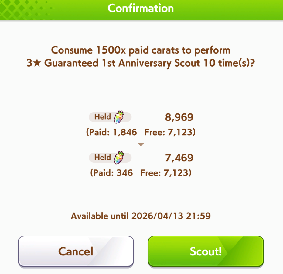 03/12 - 04/15 - Paid 3* & SSR Selector available in Carats Shop