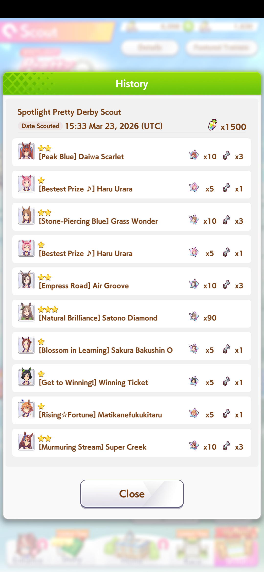 03/22 - Satono Diamond (3*), Curren Chan (SSR), Marvelous Sunday (SSR)